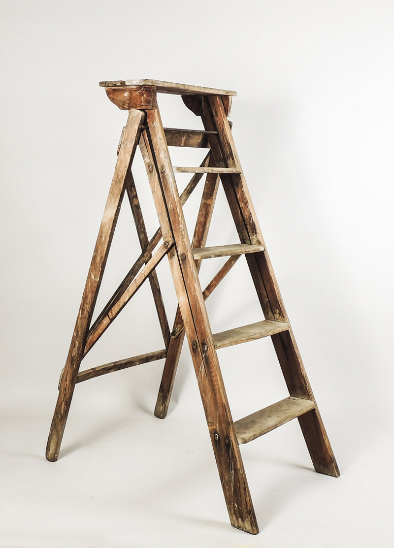 SCALETTA DA BIBLIOTECA IN ROVERE E LEGNO TENERO - OAK AND SOFTWOOD LIBRARY LADDER