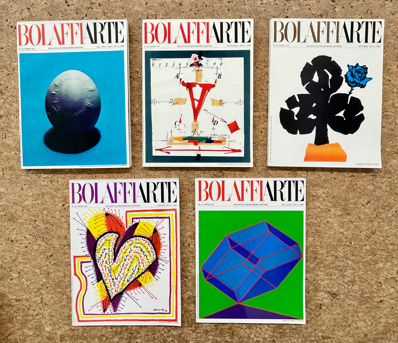 Cofanetto contenente l'annata completa della rivista Bolaffi Arte del 1976 (5 numeri riccamente illustrati)
