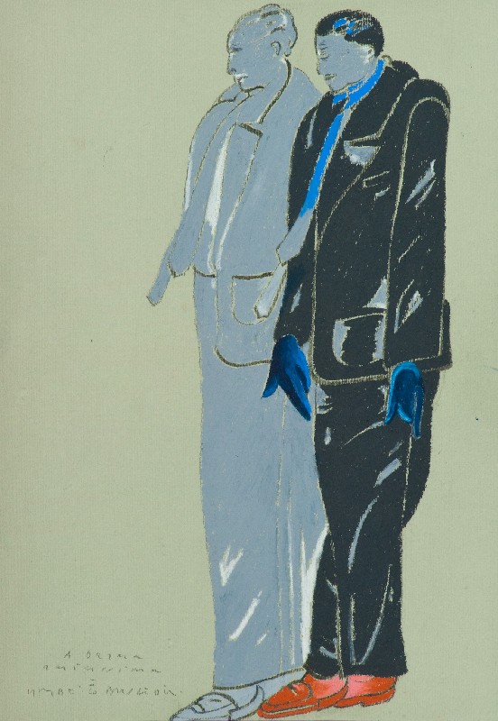 Umberto Buscioni (Bonelle (Pt) 1931) FIGURE Pastelli policromi su carta, cm. 50x35 Firma e dedica a persona in basso a sinistra.