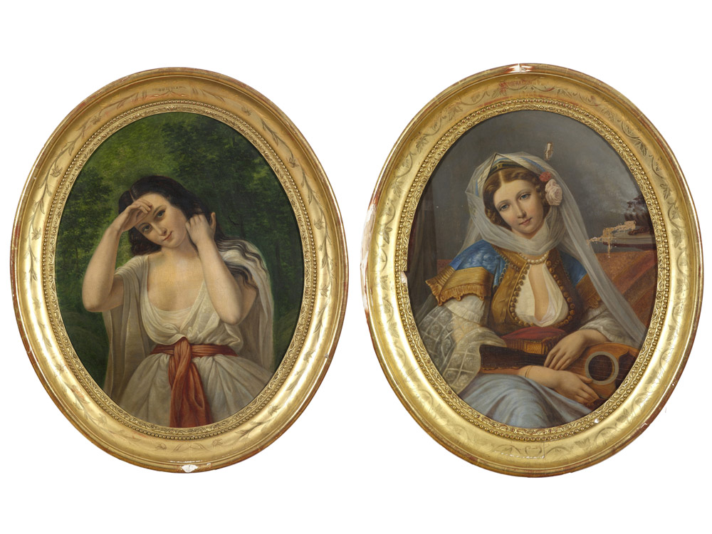Anonimo (XIX secolo) Coppia di dipinti Ritratti di giovani fanciulle Olio su...