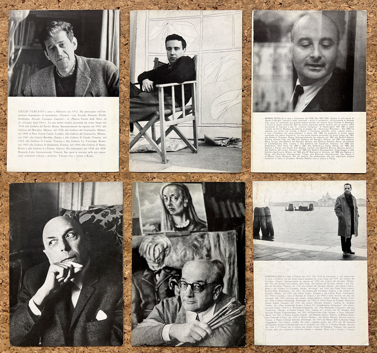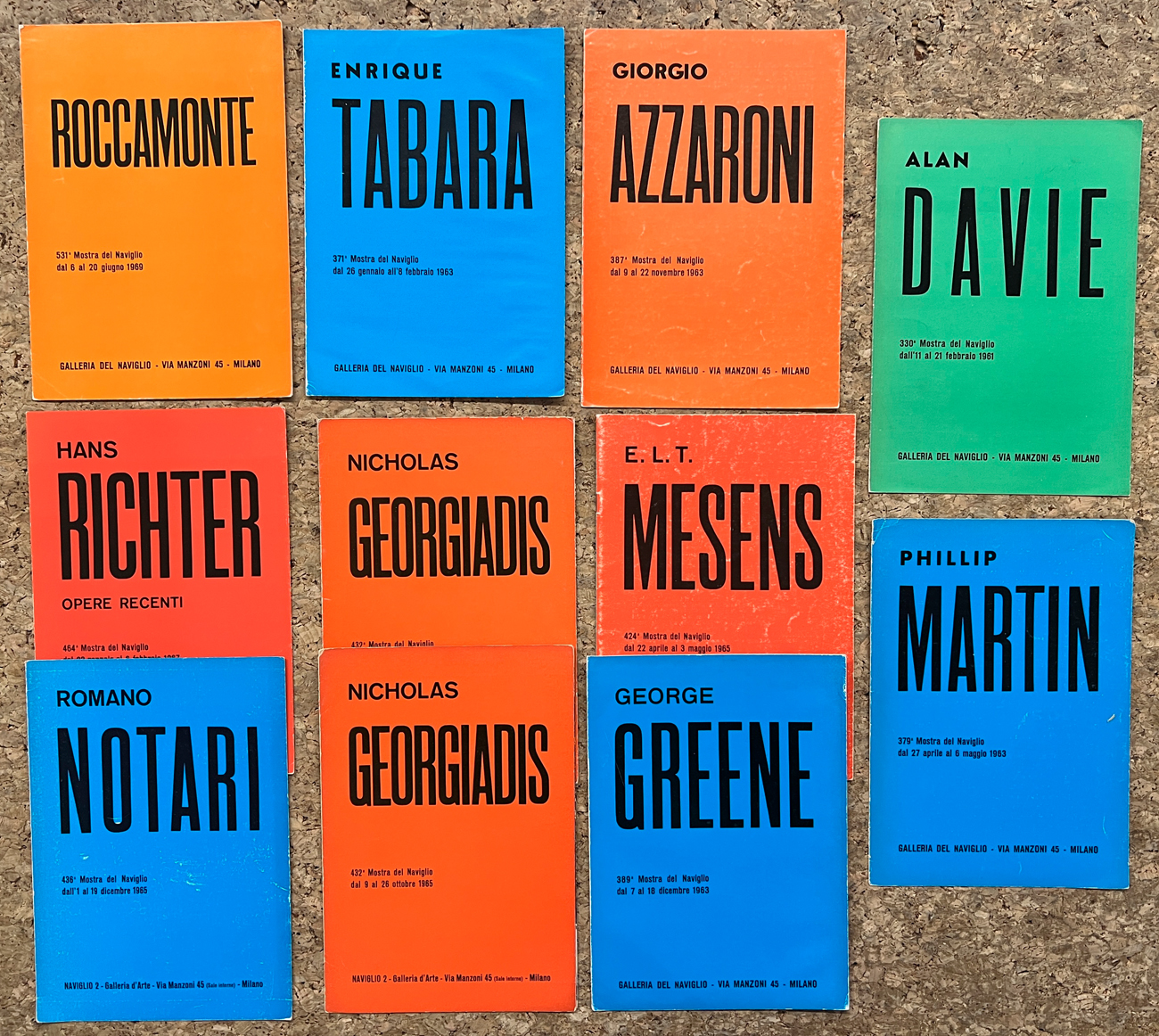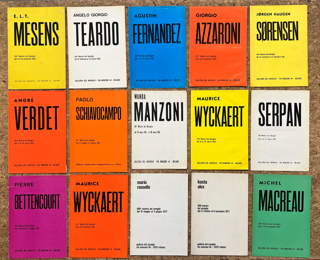 Si uniscono altri fascicoli relativi a mostre personali, ospitate nella Galleria nel corso degli anni '60, dei seguenti artisti: Giorgio Azzaroni (2), Jaroslav Serpan, Maurice Wyckaert (2), Jorgen Haugen Sorensen, Alex Kosta, Wanda Manzoni, Mario Rossello, Michel Macreau, Paolo Schiavocampo, André Verdet, Pierre Bettencourt, Enrique Tabara, Amelio Roccamonte, E. L. T. Mesens (2), George Greene, Phillip Martin, Alan Davie, Nicholas Georgiadis (2), Hans Richter, Romano Notari, Agustin Fernandez, Angelo Giorgio Teardo