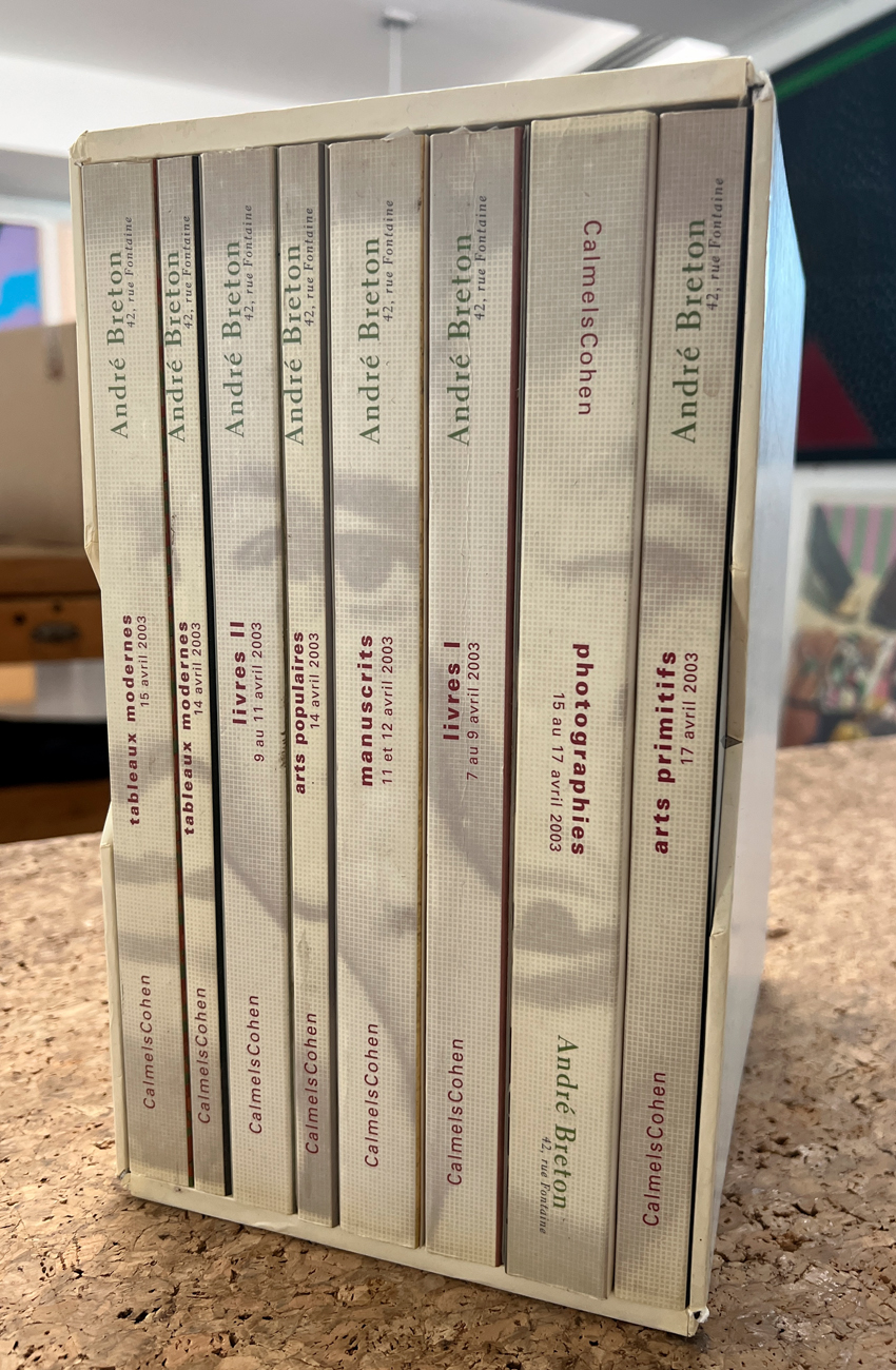 Cofanetto contenente 8 cataloghi riccamente illustrati relativa alla collezione di Andrè Breton, dispersa in asta da Calmels Cohen, Parigi, nell'Aprile 2003