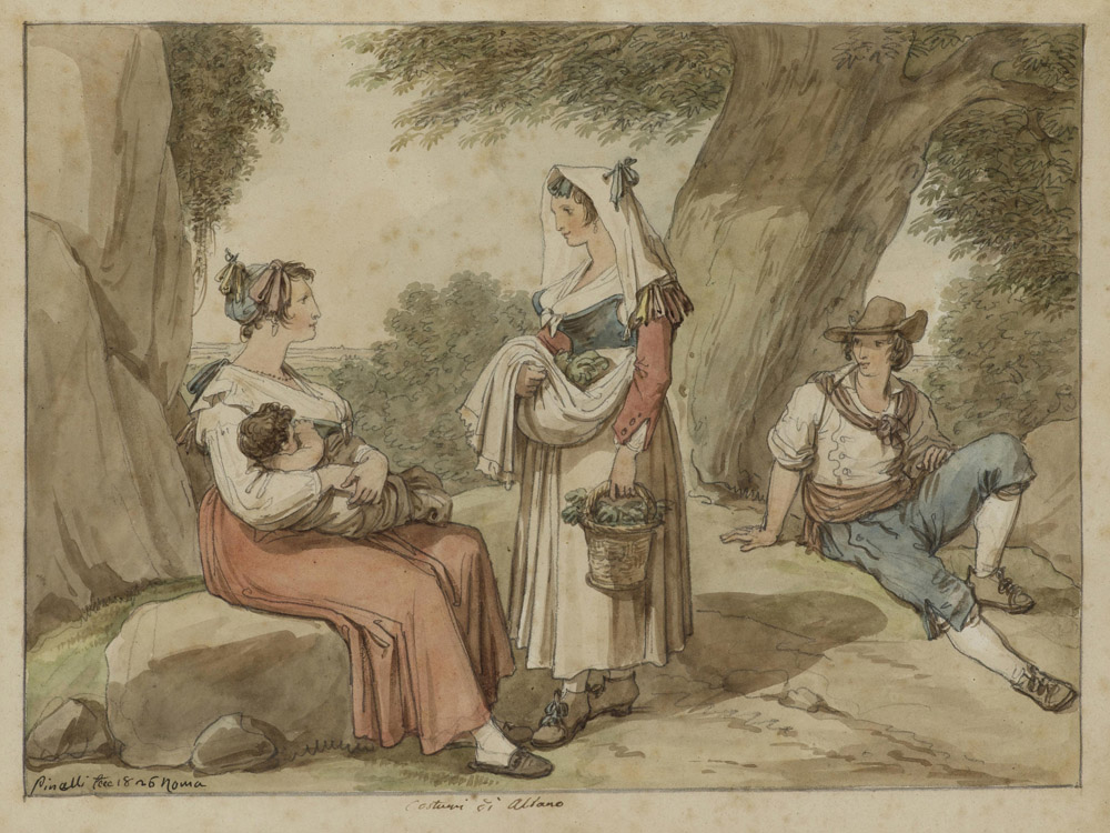 Bartolomeo Pinelli (Roma 1781-1835) Costumi di Albano Acquarello su carta Firmato e datato 1826 Misure 24x31 cm