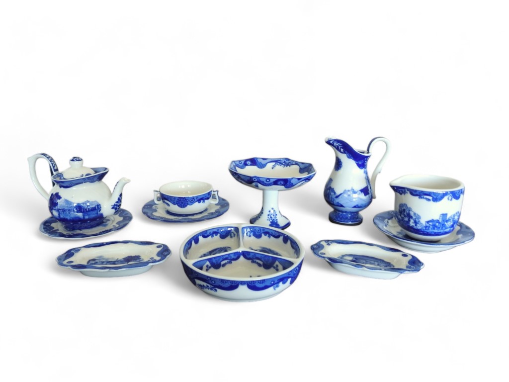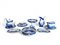 fra cui una teiera, una brocca, un¿alzata, una tazza da brodo con piatto, un piatto ed una scodella, un¿antipastiera, due vassoietti ovali, una lattiera Blue Collection Tognana