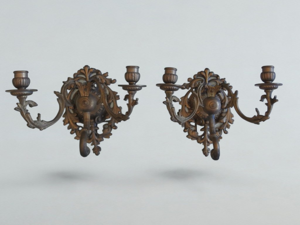 a due bracci ciascuna, modellati a motivi fitomorfi
