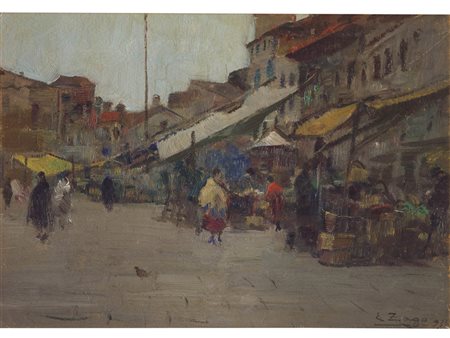 Erma Zago (Bovolone 1880-1942) Campo Santa Margherita Olio su tavoletta...