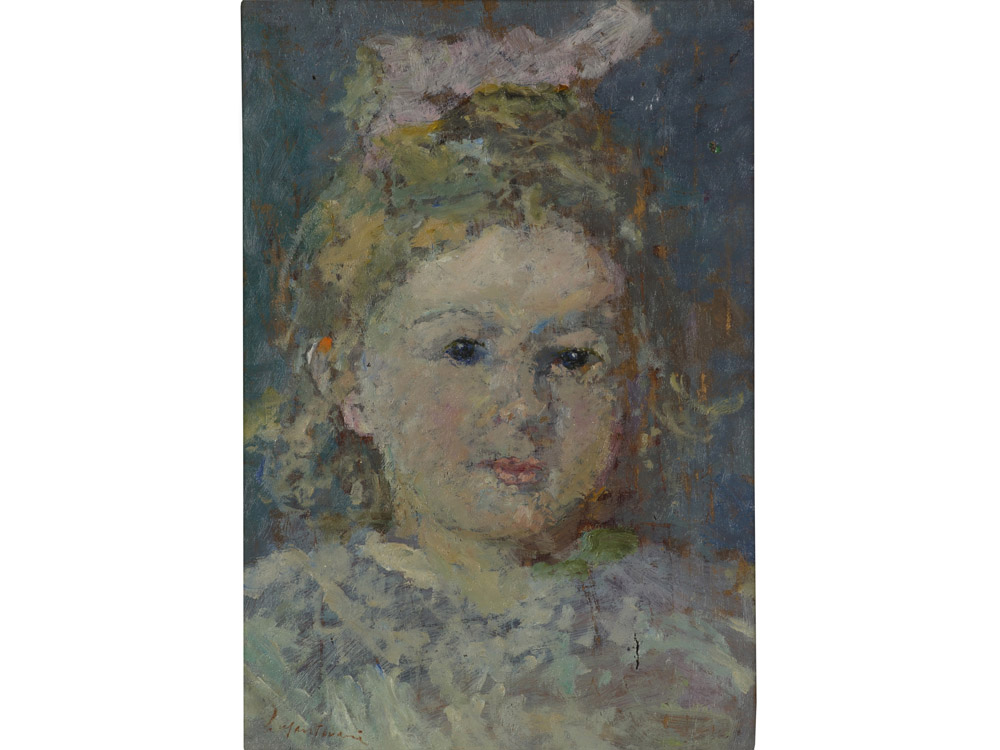 Luigi Mantovani (Milano 1880–1957) Ritratto di bambina Olio su tavoletta Firmato Misure 34.8x24 cm