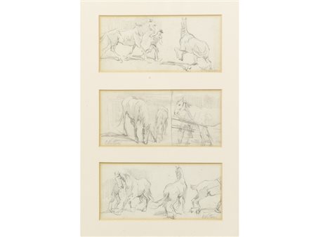 Carlo Vittori (Cremona 1881-1943) Tre bozzetti Scene con cavalli Matita su...