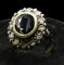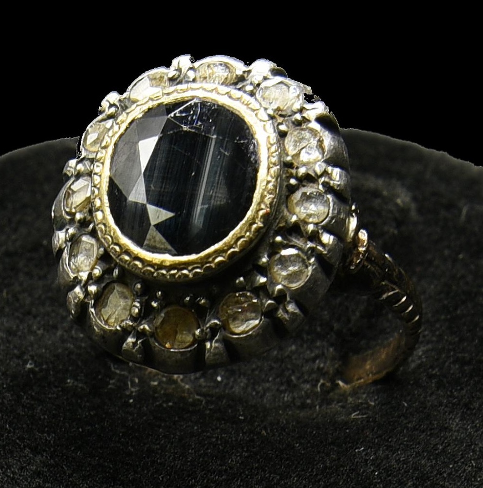ANELLO IN ORO A BASSO TITOLO, ARGENTO, DIAMANTI E ZAFFIRO anello a corolla...