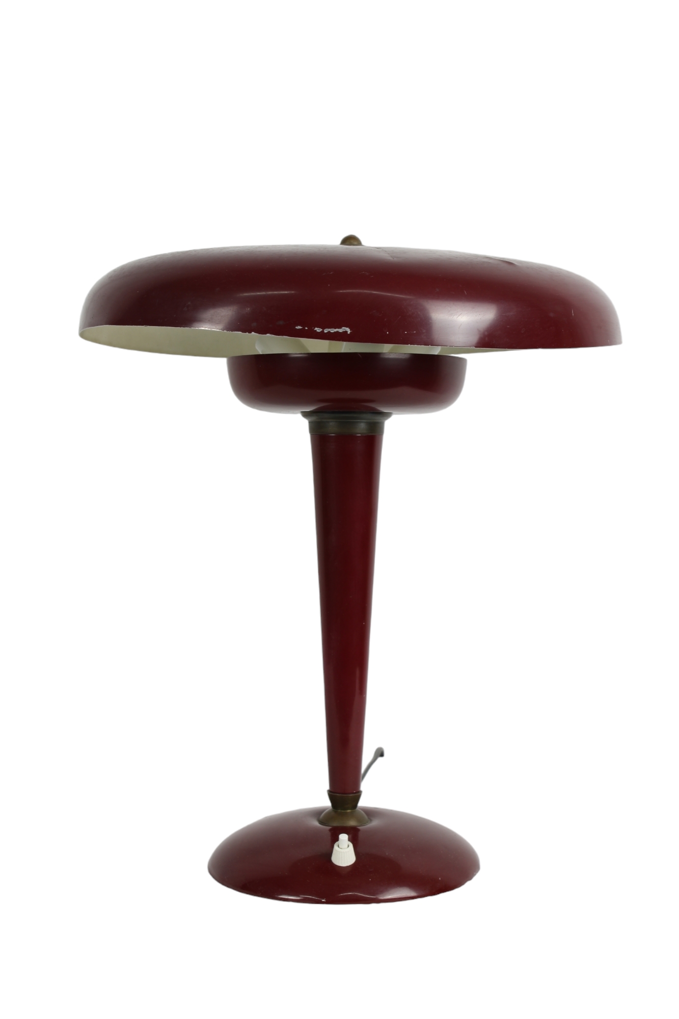 GRANDE LAMPADA MINISTERIALE di colore rosso con elementi in ottone periodo stimato anni 50 di Oscar Torlasco produzione italiana h cm 40 x Ø 37