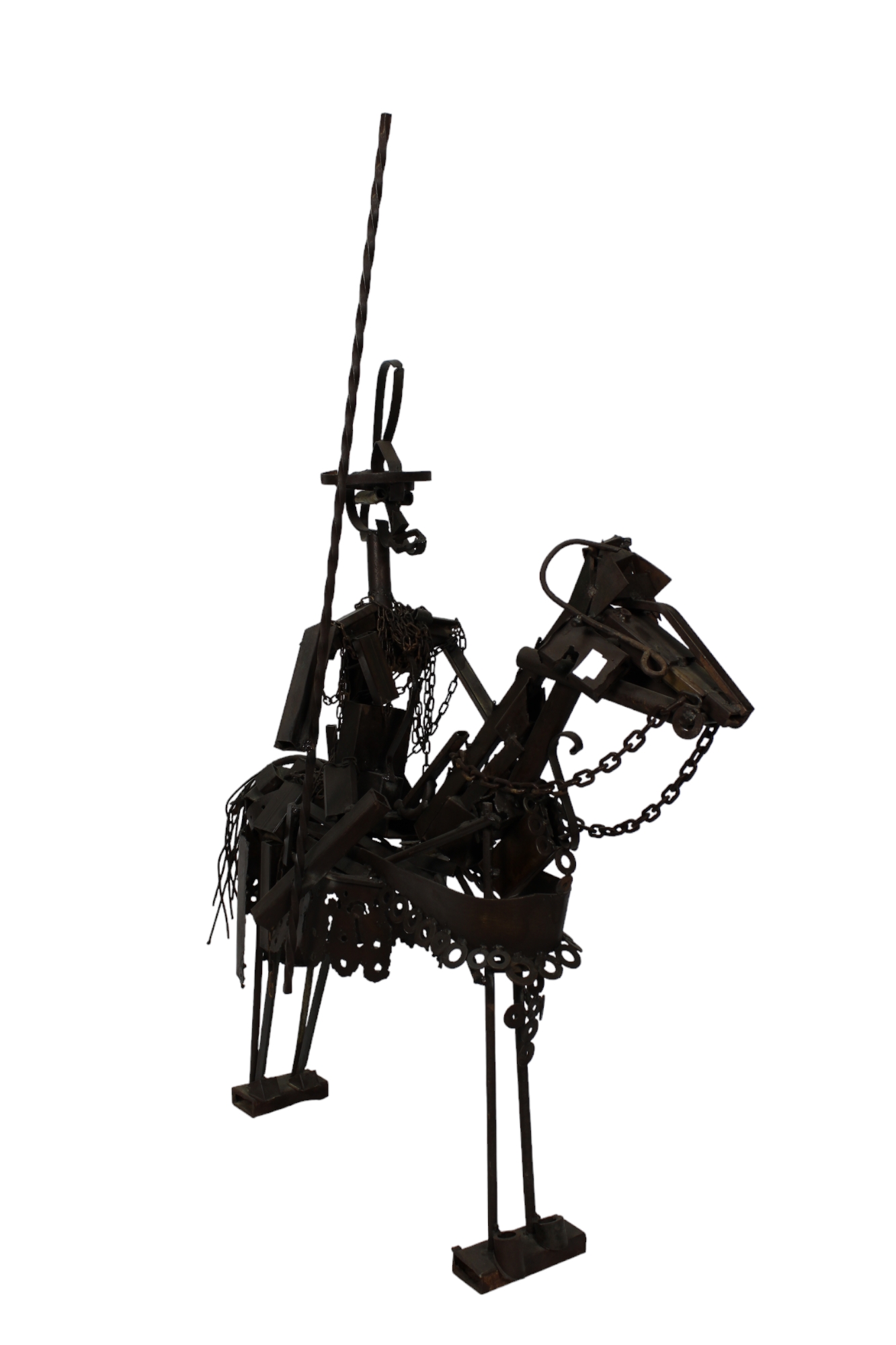 PARTICOLARE GRANDE SCULTURA BRUTALISTA raffigurante cavaliere produzione italiana anni 60 h cm 145 x 112 x 38