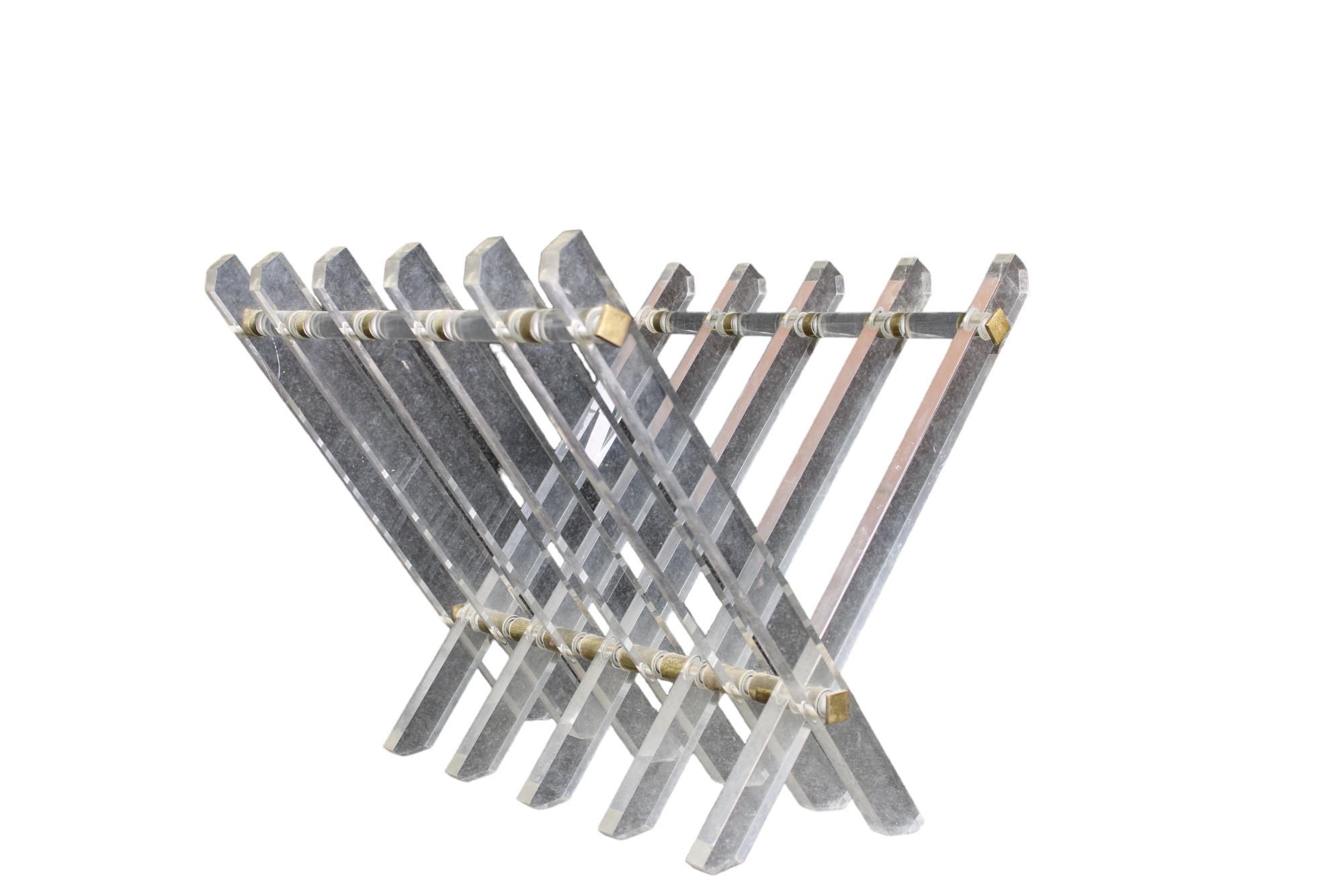 PORTARIVISTE in plexiglas e ottone produzione italiana periodo stimato anni 70 h cm 36,5 x 40 x 42