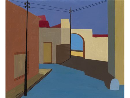 Ferrario (XX secolo) Villaggio Metafisico Olio su tela Firmato Misure 50x60 cm