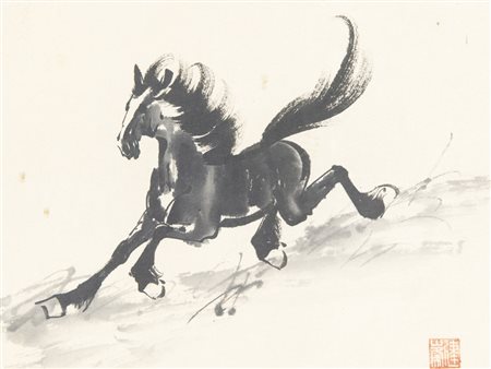Disegno orientale (XX secolo) Cavallo in corsa Acquarello su carta Misure 19.5x24 cm