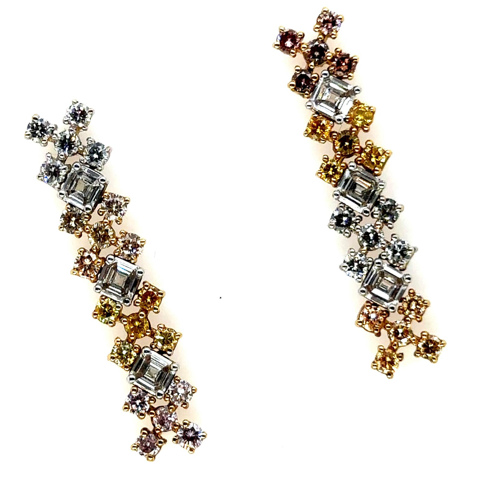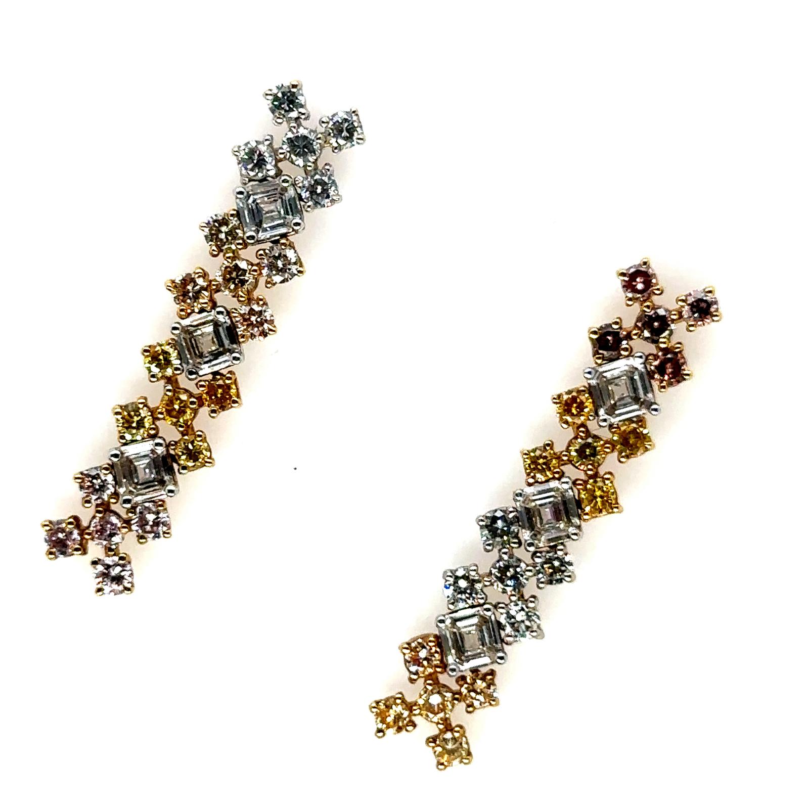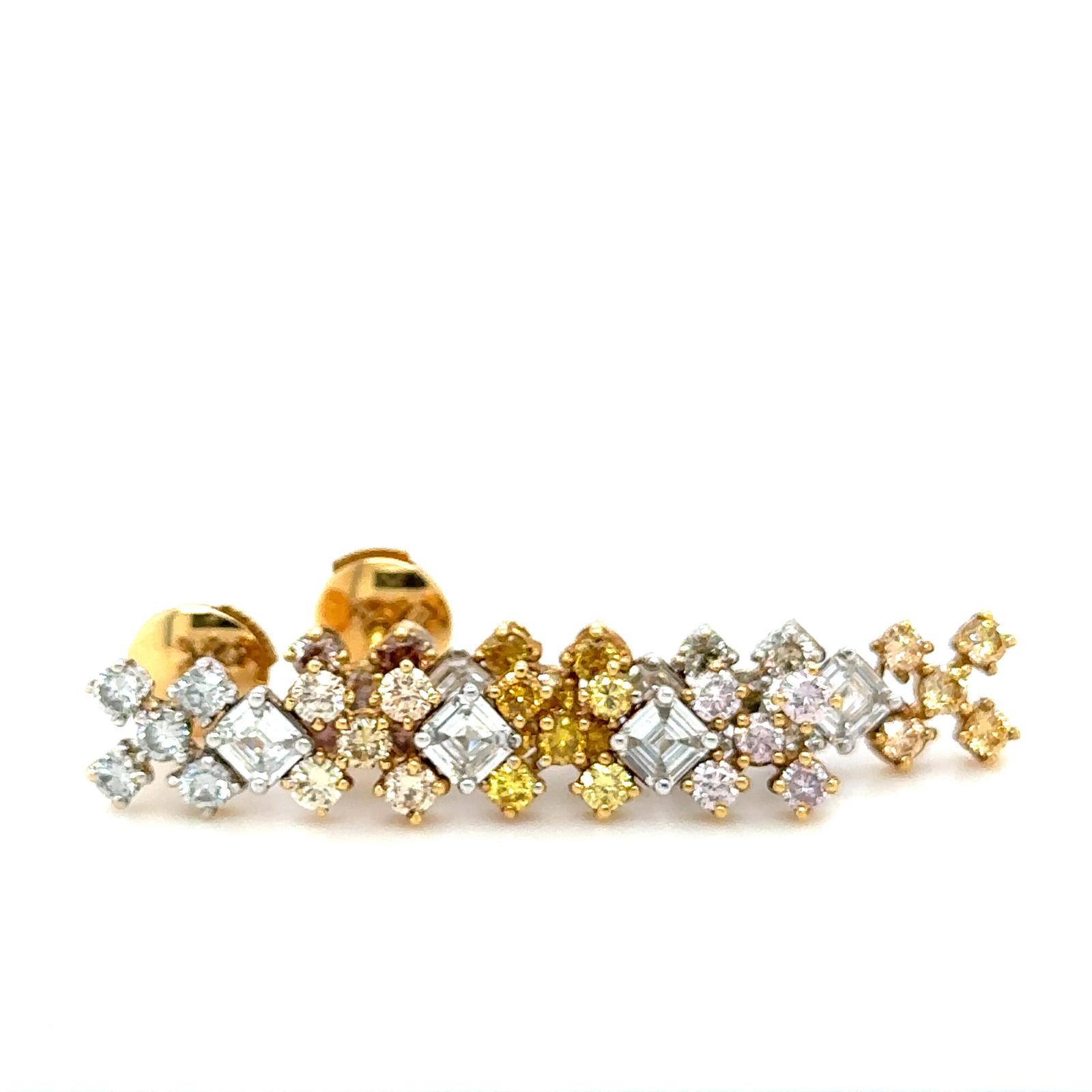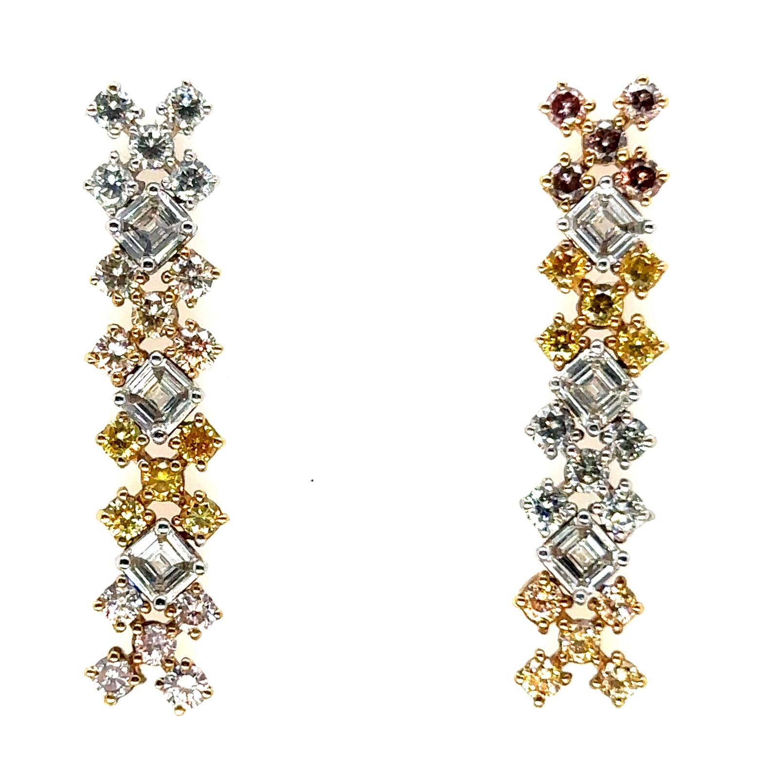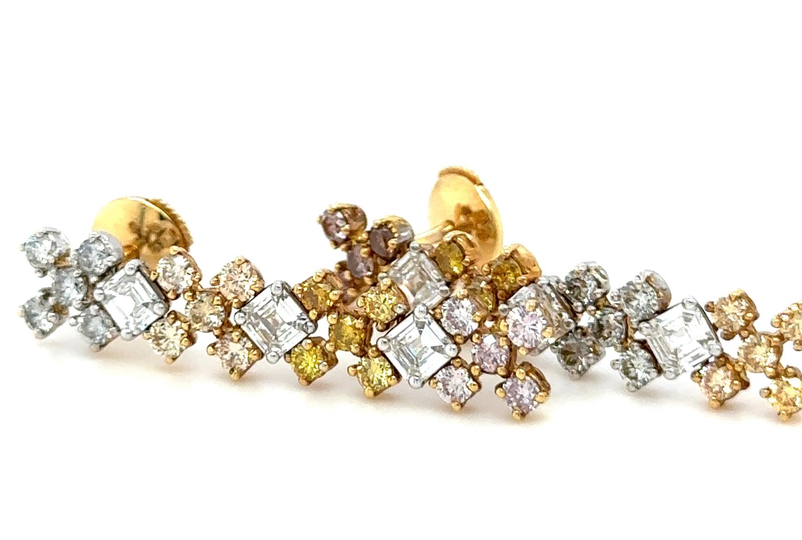 ORECCHINI IN ORO GIALLO 18K 6.64 GR CON DIAMANTI PER 2.40 CARATI MIX TRA BIANCHI, ROSA INTENSO ARANCIO GIALLO PUREZZA VS - 3CM - CERTIFICATO GEMMOLOGICO MAROZ DIAMONDS LTD MEMBRO ISRAEL DIAMOND EXCHANGE - HR100