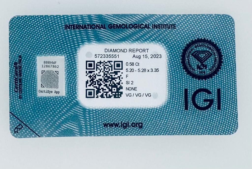 DIAMANTE 0,58 CT F - SI2 - IGI - SF30805