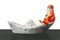 Ars Pulcra Torino - Barca di carta con uomo barbuto, scultura in terraglia a colaggio con decoro policromo. H cm 20 x L cm 30 Marchio della manifattura.Marchio della manifattura.