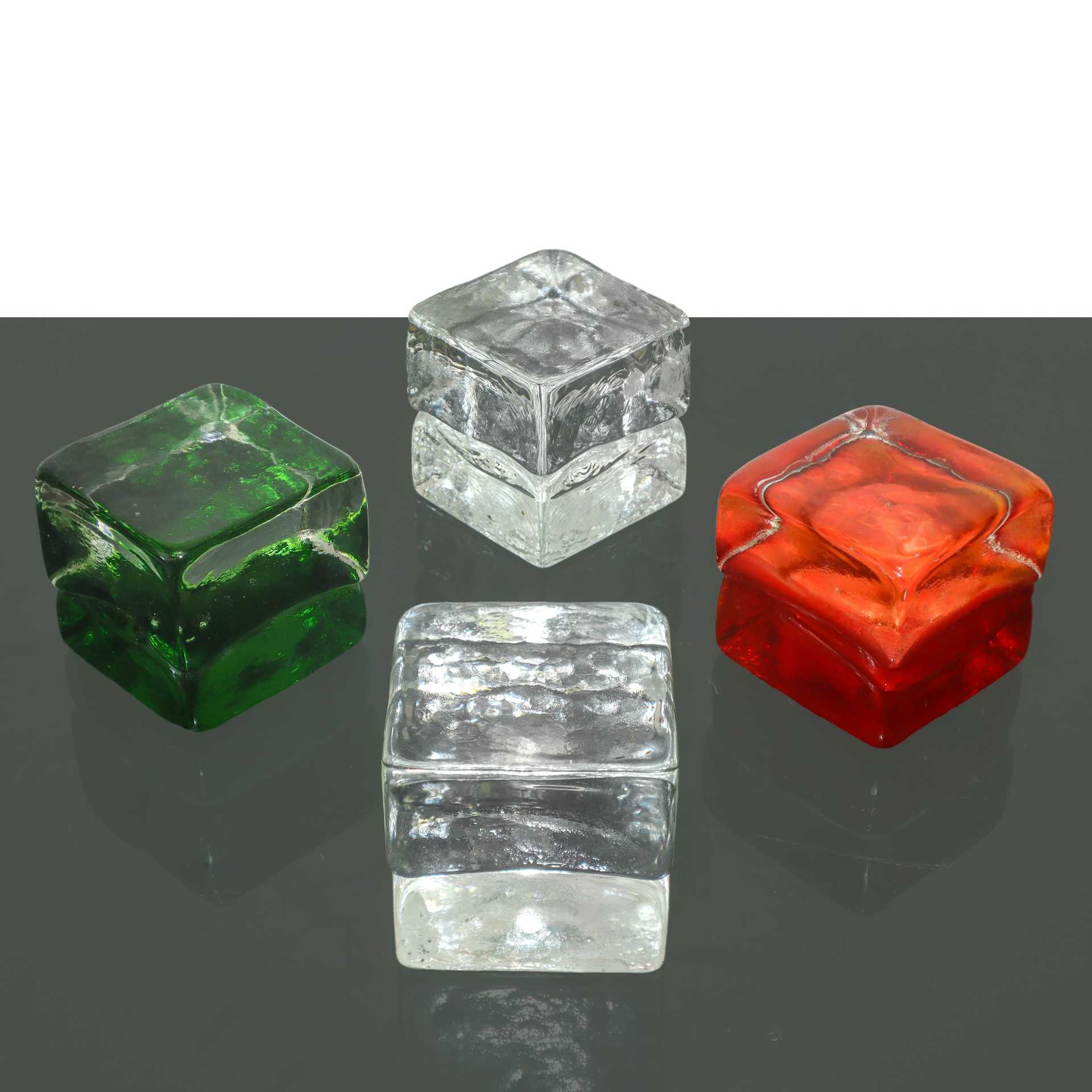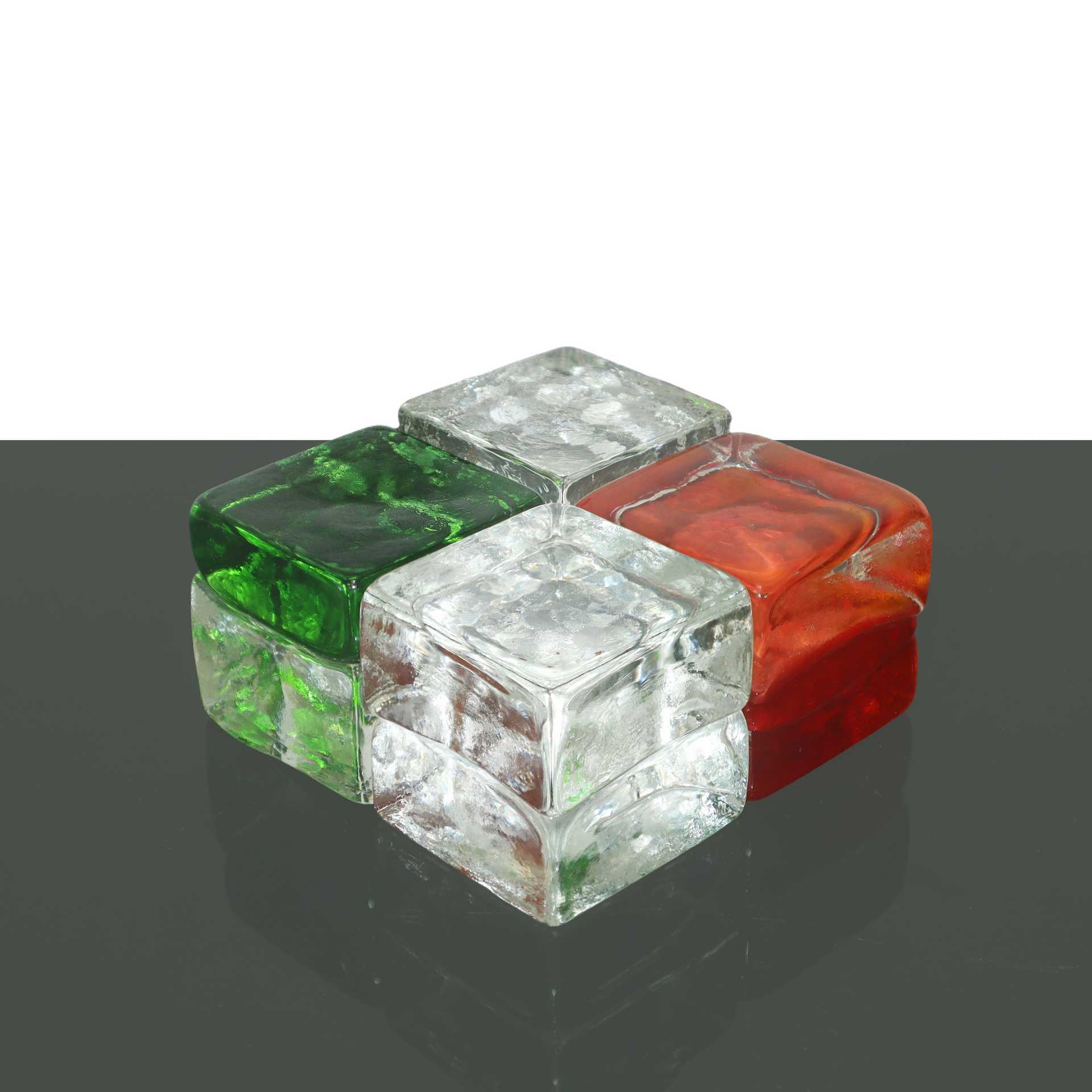 Giusto Toso - Elemento decorativo in vetro modello Gogi/Gogi, 70's cm 6X6 circa cad. Composto da 4 pezzi quadrati 2 in vetro trasparente uno in vetro sfumato verde uno in vetro arancione Composto da 4 pezzi quadrati 2 in vetro trasparente uno in vetro sfumato verde uno in vetro arancione
