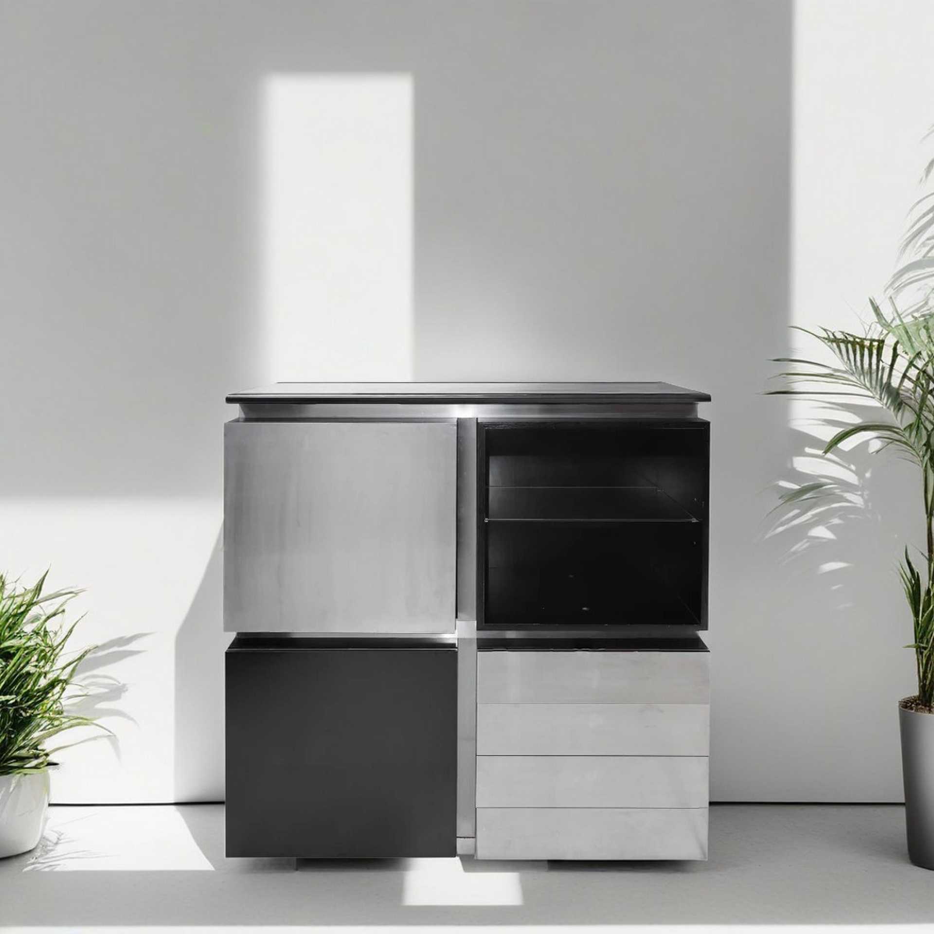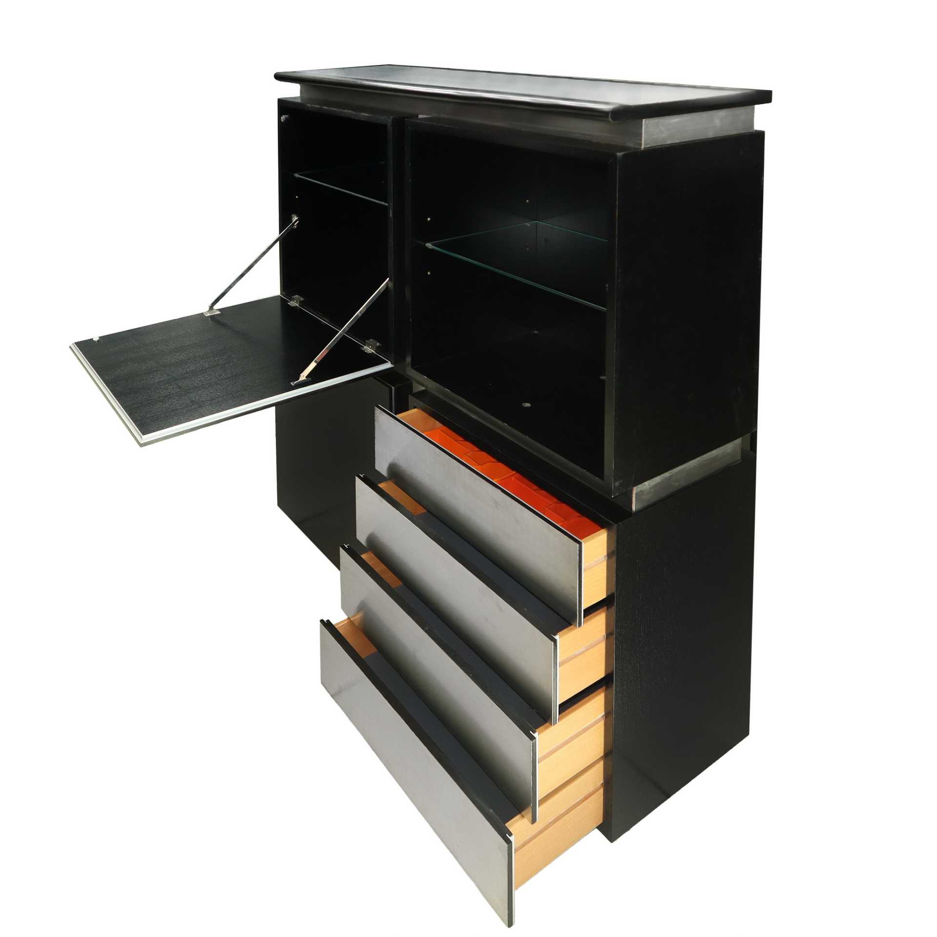 Acerbis Design - Sistema modulare, Giotto Stoppino e Ludovico Acerbis Composto da 4 moduli con struttura in legno massello con finitura nero opaco e alluminio e profili in alluminio.
