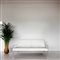Divano prod. Italiana Alivar con struttura cromata e tappezzeria in pelle bianca e schienale di sostegno in legno chiaro H 80 x 158 x 80