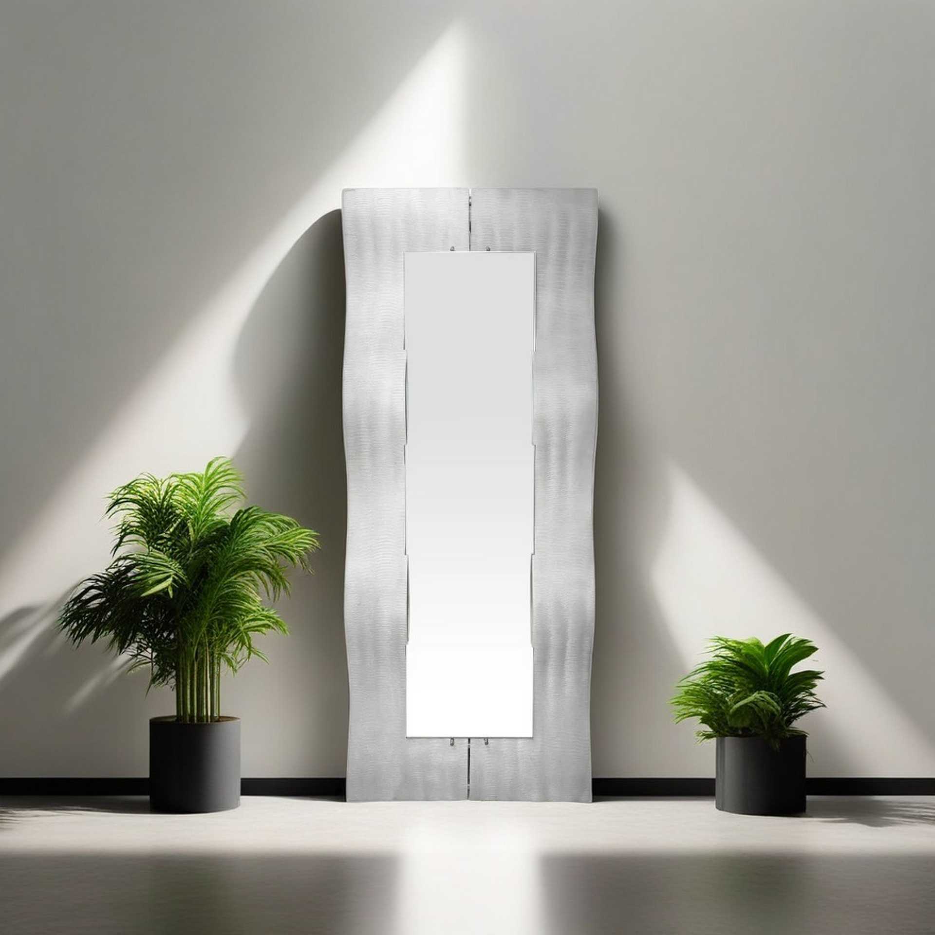 Lorenzo Burchiellaro - Specchiera Wave a figura intera in alluminio inciso, 1970 H cm 149x60x5 Marchio in alto a sinistraMarchio in alto a sinistra