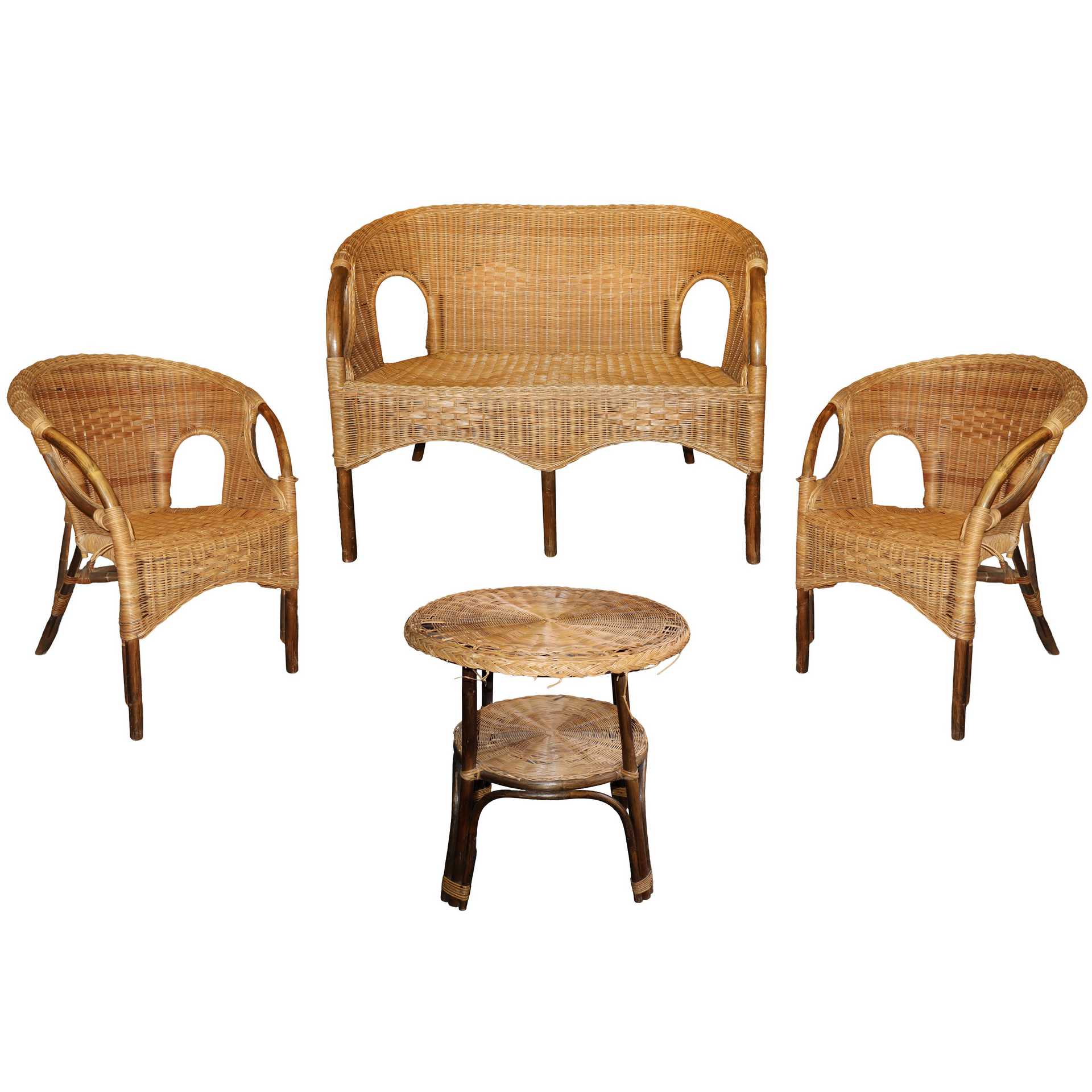 Salotto da giardino, in rattan e midollino composta due poltrone , divano e tavolinetto