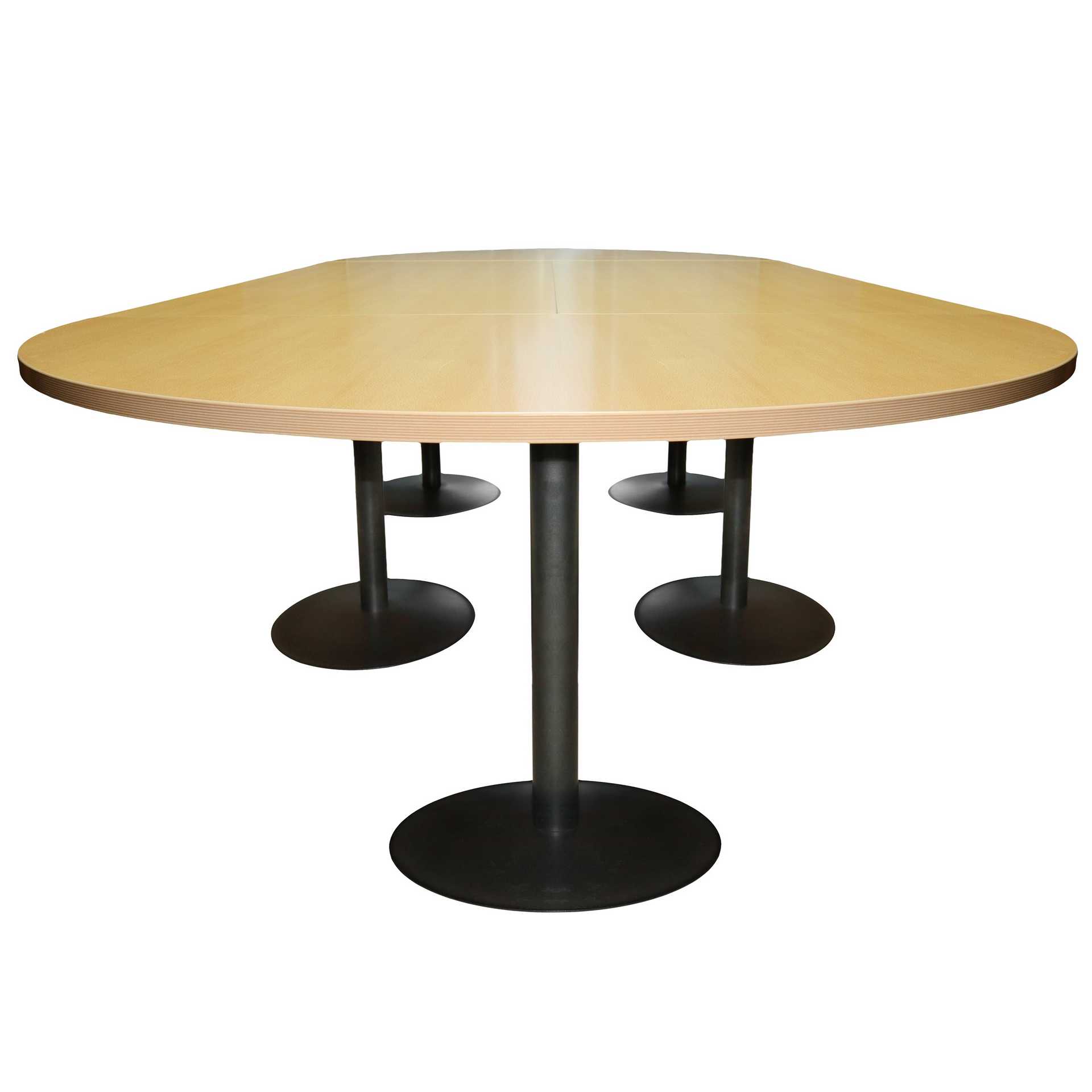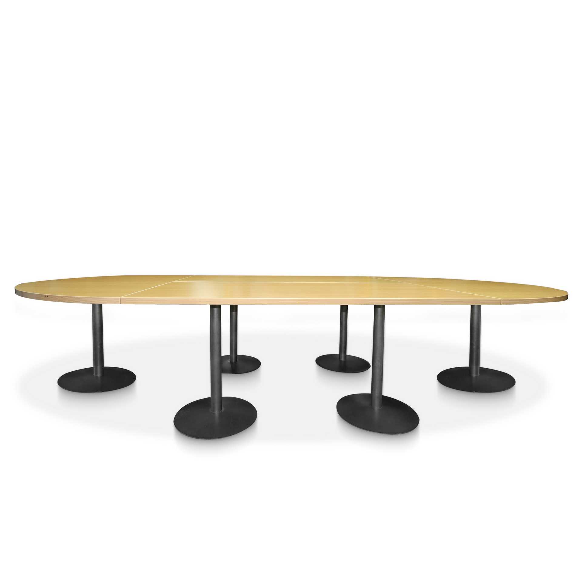 TR by Fantoni - Tavolo in legno di rovere chiaro con piano componibile H cm 72x320x80 I basamenti sono costituiti da un’essenziale colonna e da una base a disco, entrambi in acciaio colorato grigio antracite.I basamenti sono costituiti da un’essenziale colonna e da una base a disco, entrambi in acciaio colorato grigio antracite.