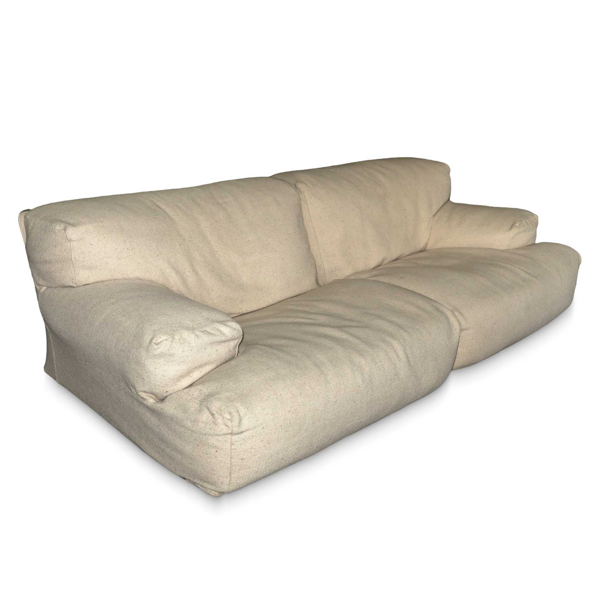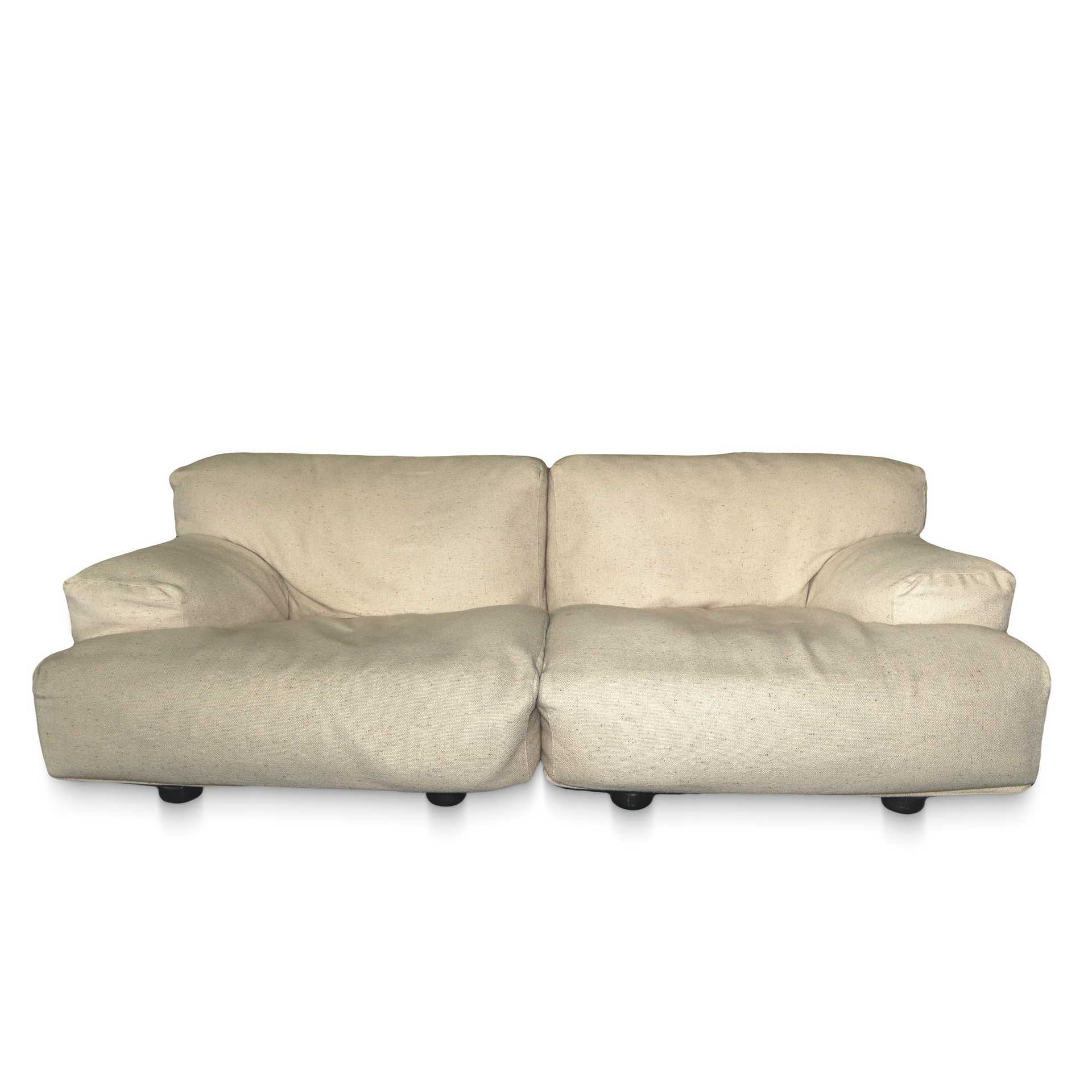Vico Magistretti per Cassina - Coppia di divani Fiandra e due poltrone, 1975 Composto da elementi modulari che compongono configurazioni in linea e ad angolo. La struttura è in multistrato di faggio e il rivestimento dei cuscini in piuma è fissato per mezzo di cerniere ed è rimovibile. Il rivestimento è in ottimo stato tranne un piccolo strappo in un angolo in basso visibile in foto.Composto da elementi modulari che compongono configurazioni in linea e ad angolo. La struttura è in multistrato di faggio e il rivestimento dei cuscini in piuma è fissato per mezzo di cerniere ed è rimovibile. Il rivestimento è in ottimo stato tranne un piccolo strappo in un angolo in basso visibile in foto.