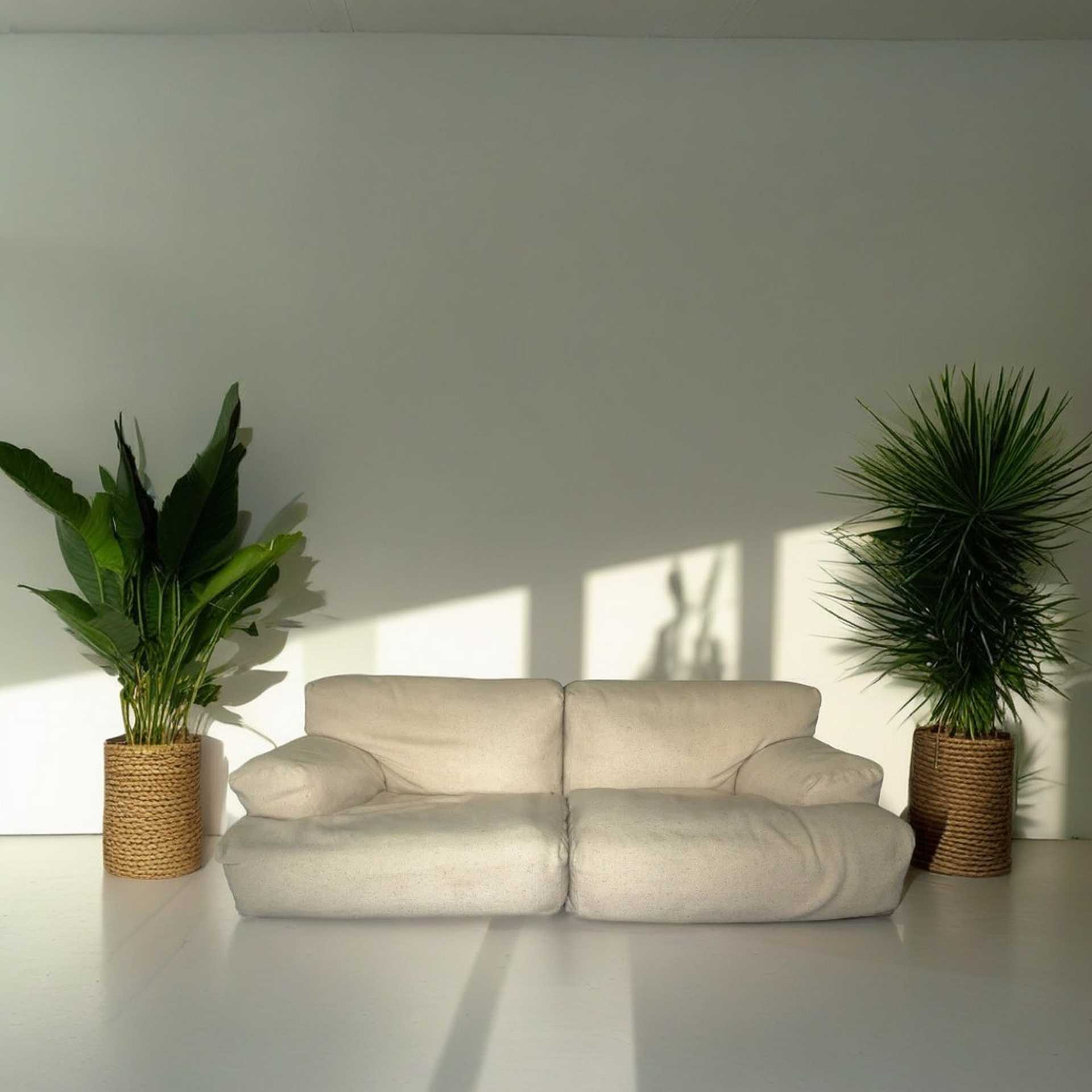 Vico Magistretti per Cassina - Divano Fiandra a due posti La struttura è in multistrato di faggio e il rivestimento dei cuscini in piuma è fissato per mezzo di cerniere ed è rimovibileLa struttura è in multistrato di faggio e il rivestimento dei cuscini in piuma è fissato per mezzo di cerniere ed è rimovibile