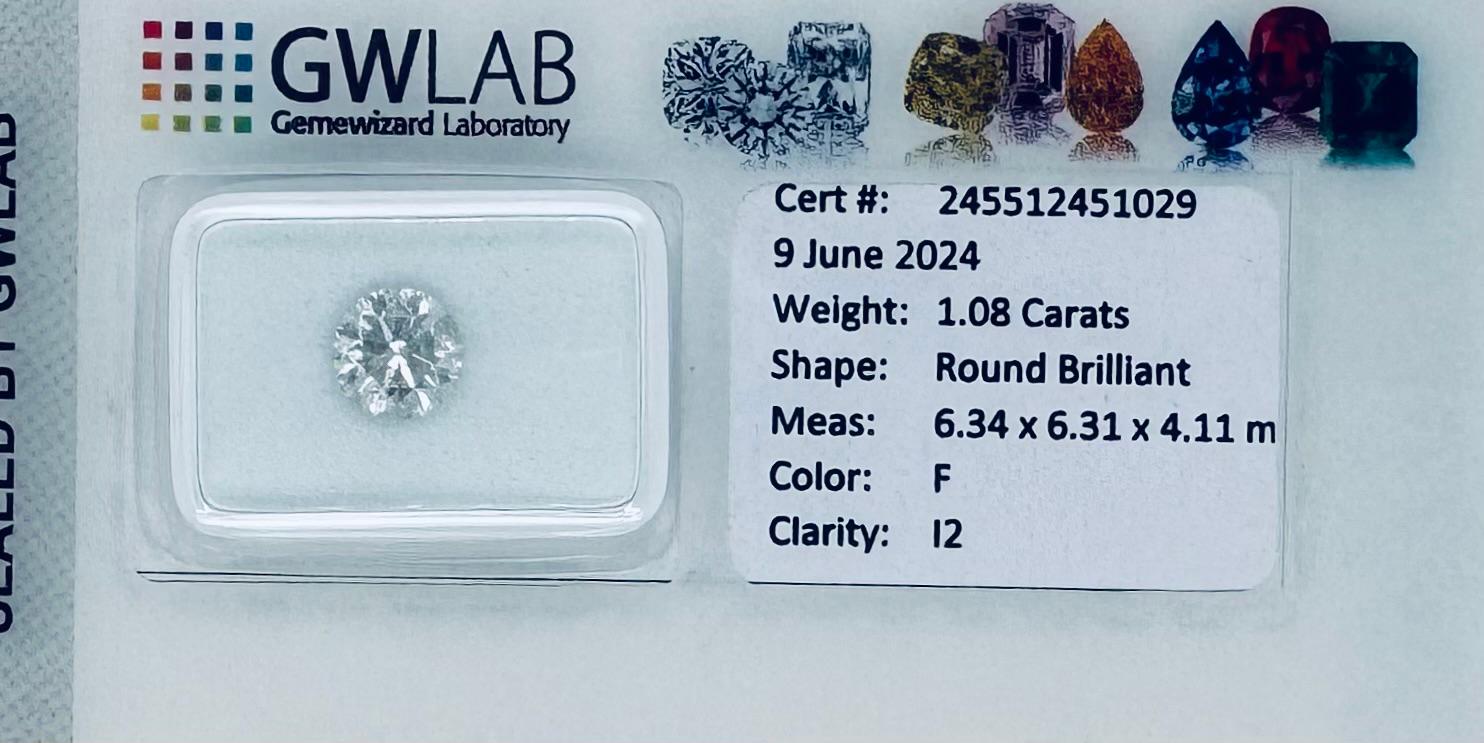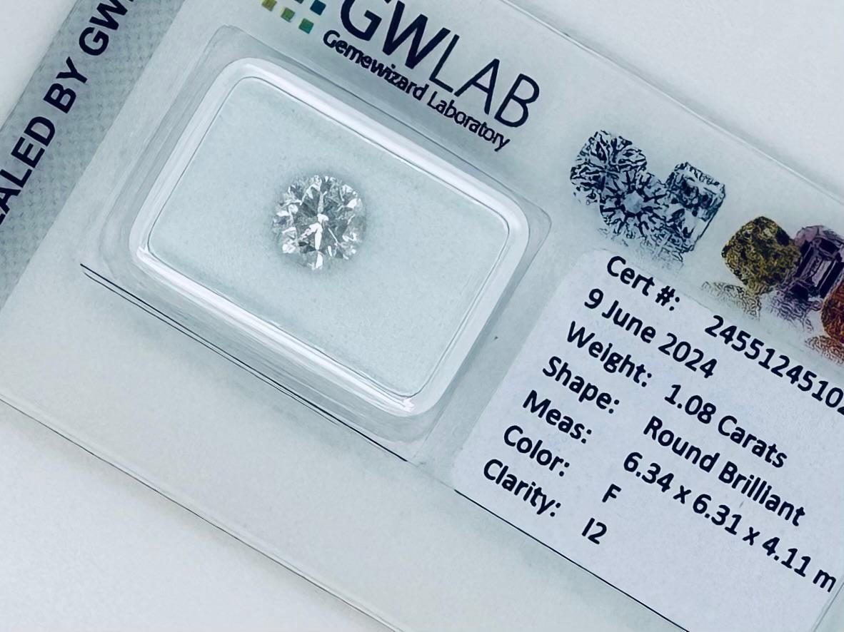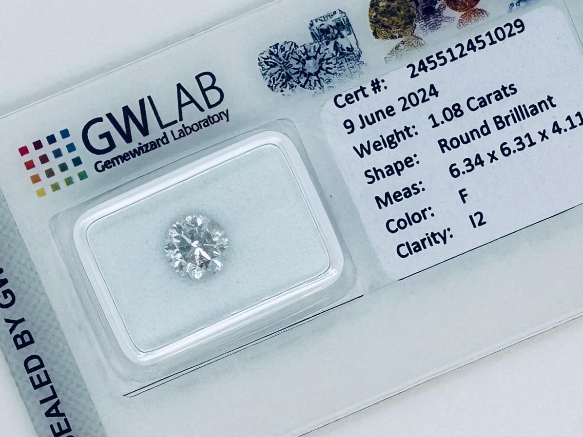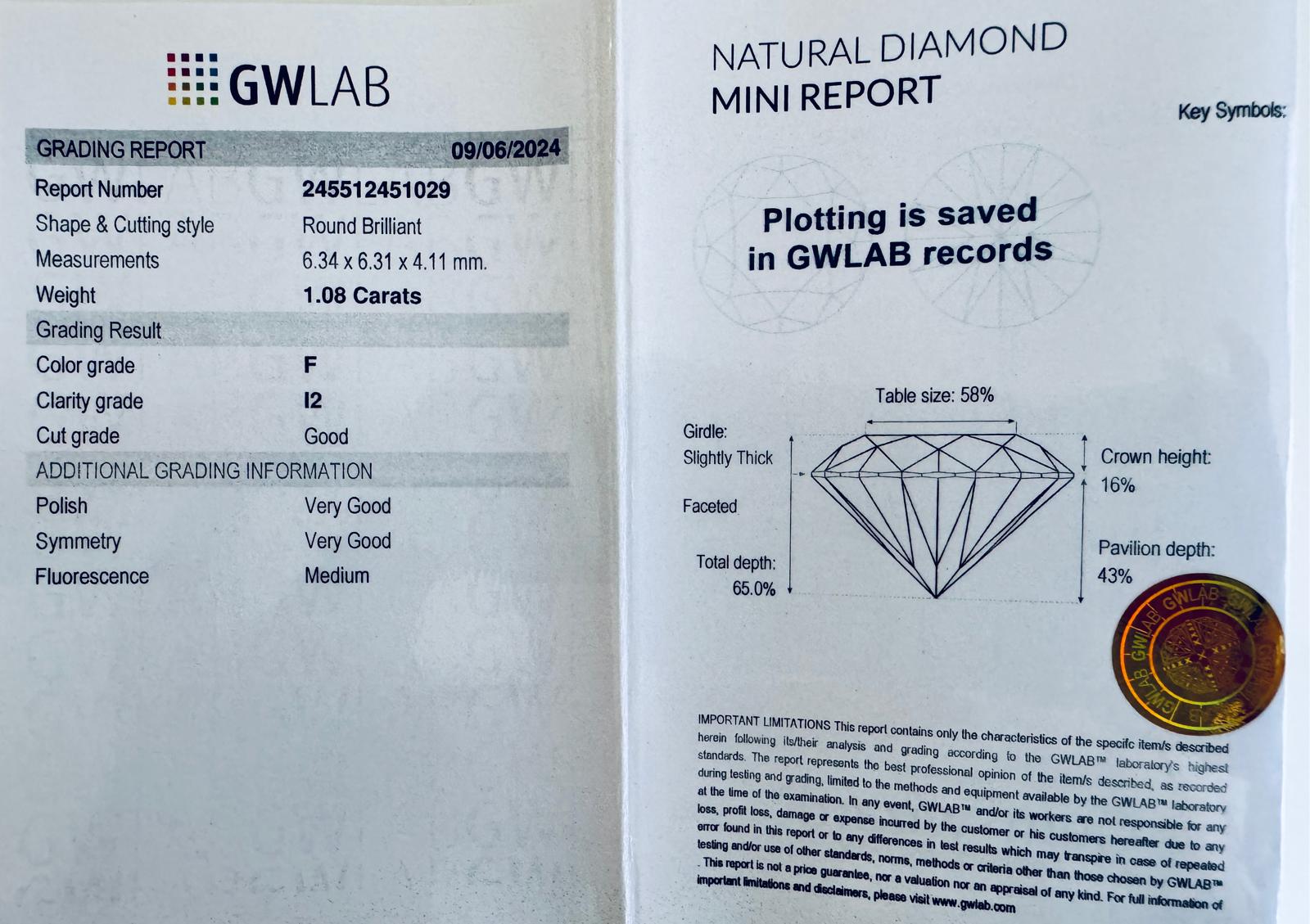 DIAMANTE NATURAL POLISHED 1,08 CARATI COLORE F - PUREZZA I2 - TAGLIO BRILLANTE - CERTIFICATO GW - C40506-1