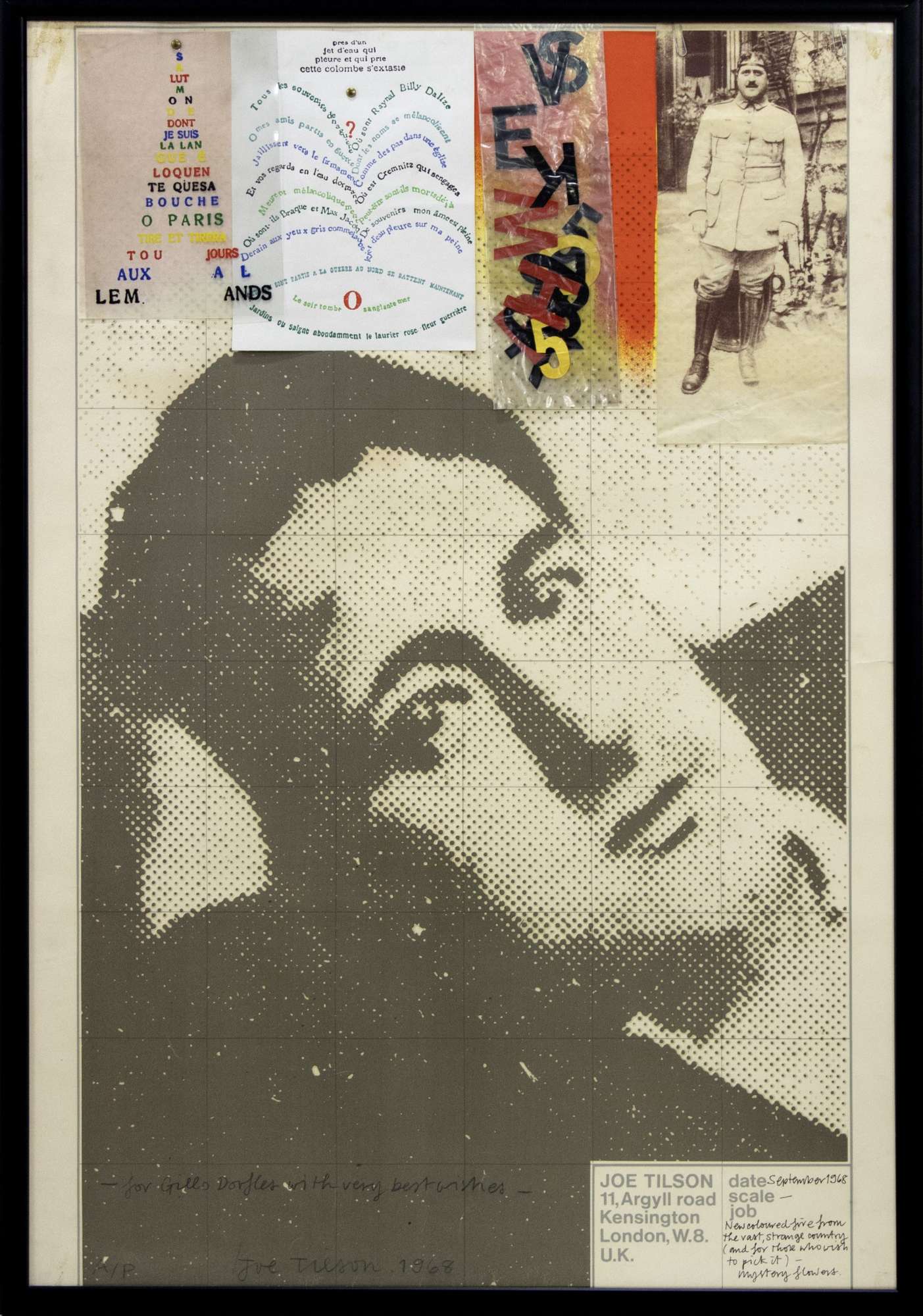 Joe Tilson, Senza titolo, 1968, multiplo, collage su carta, 102x68 cm, dedicato a Gillo Dorfle, tiratura A/P