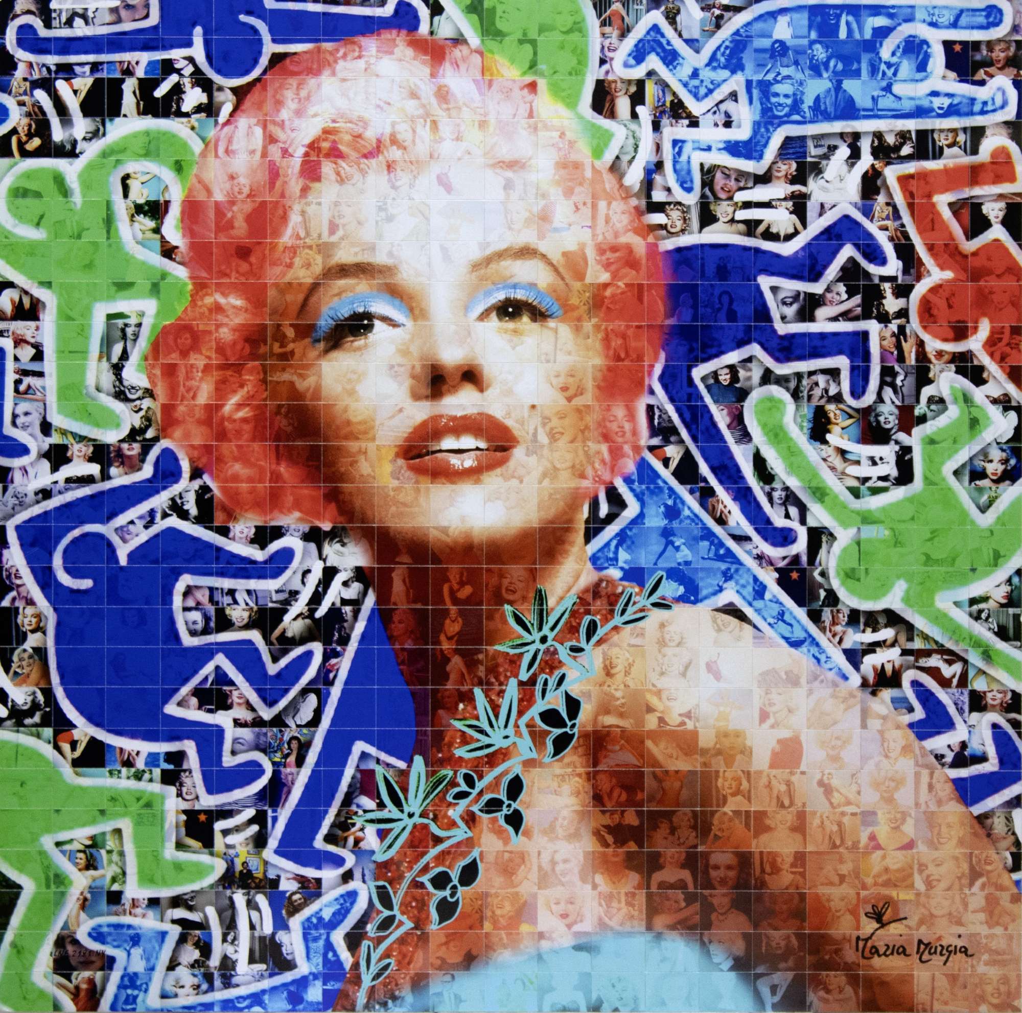 Maria Murgia, Marilyn nell’atelier di Keith Haring, 2019, fotomosaico digitale montato su pannello kapafix, 50x50 cm, firma presente sul fronte dell'opera, autentica a cura dell'artista (numero LNE.2181.NY)