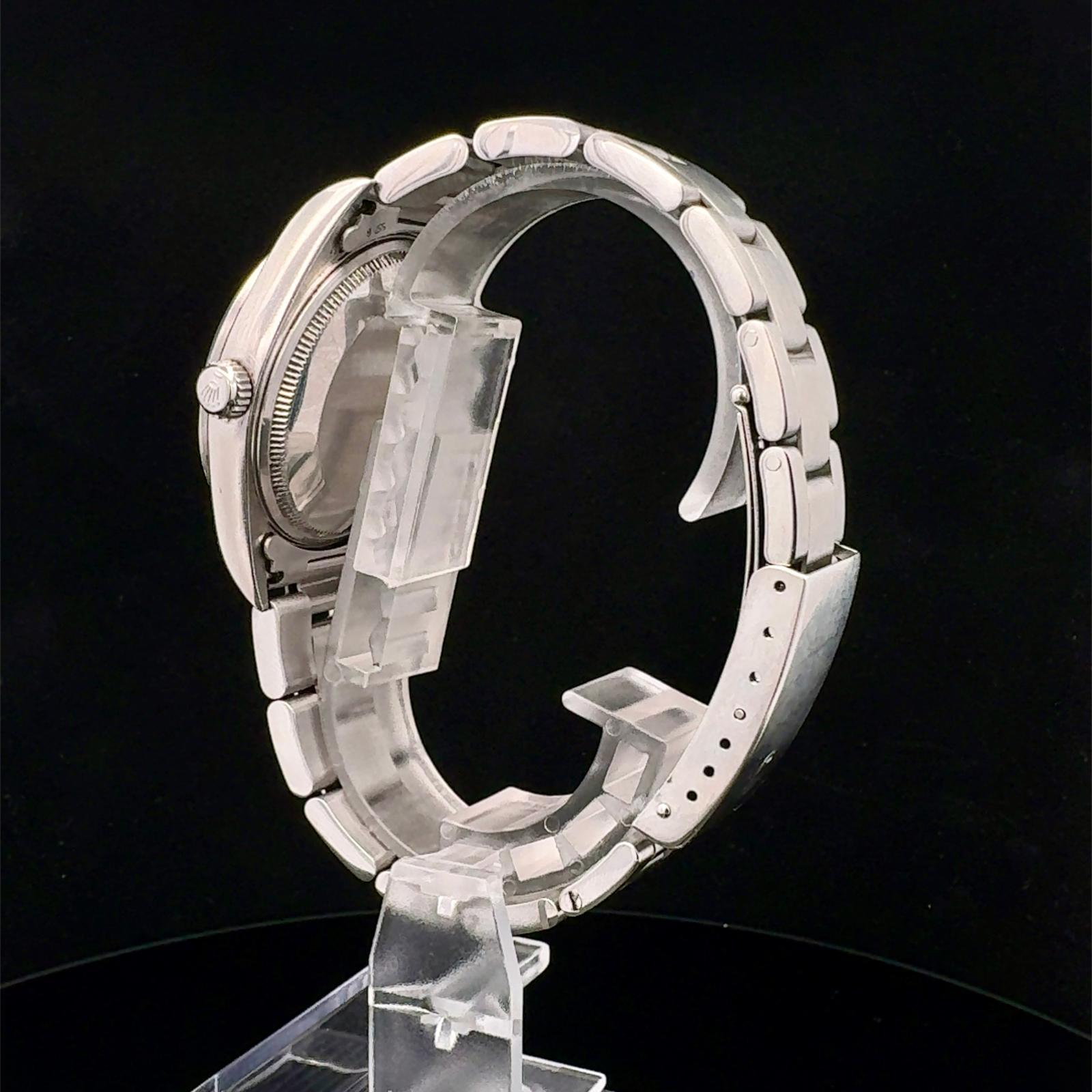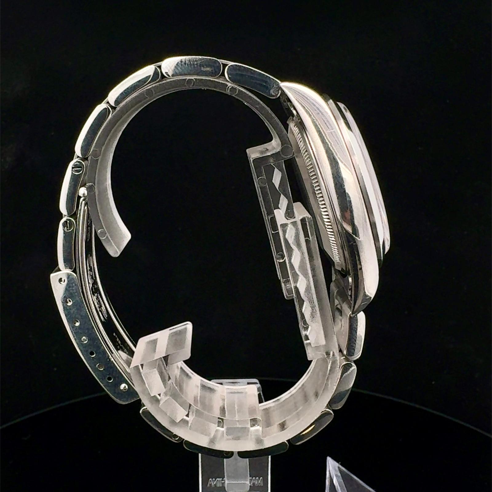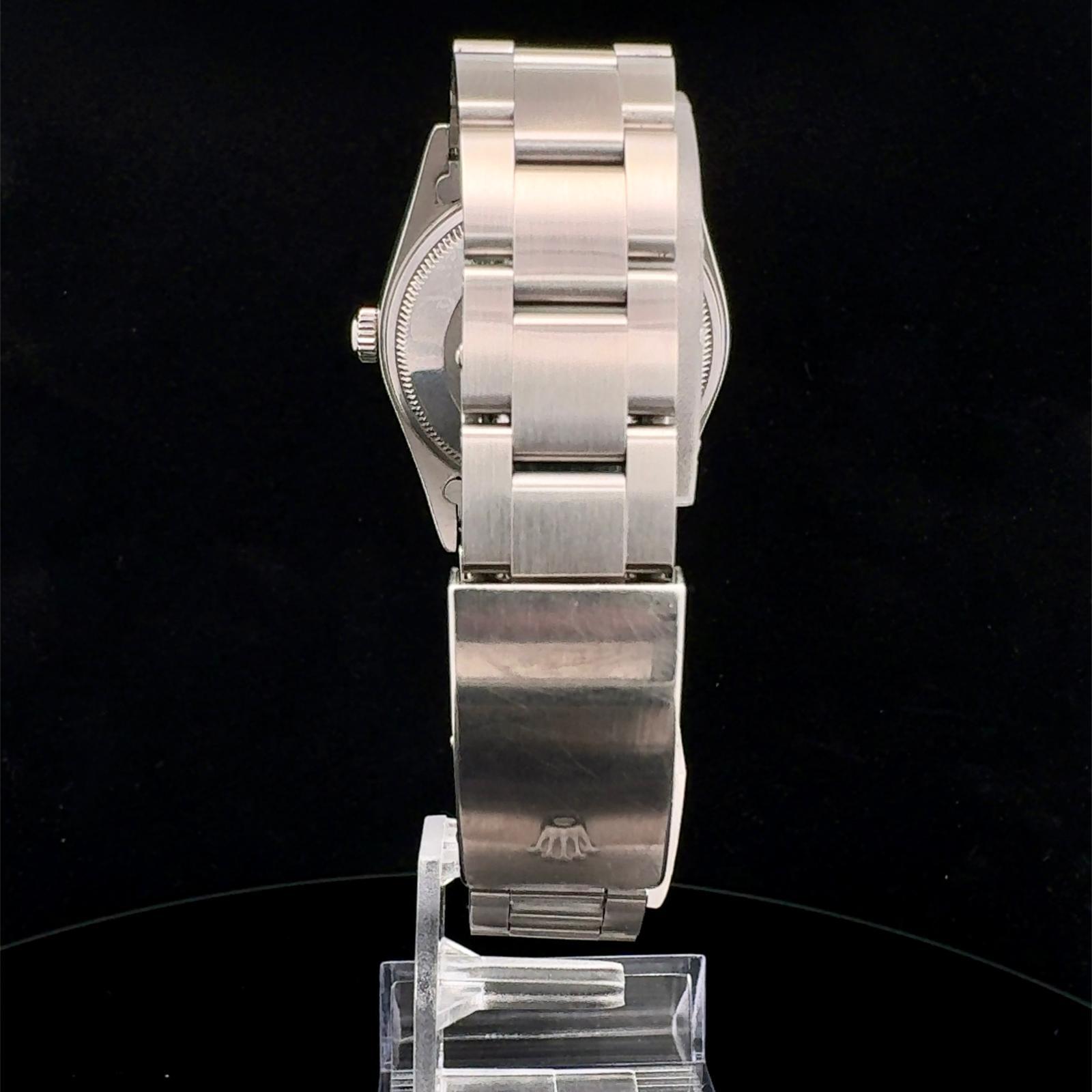 Marca Rolex Modello (Orologio) Air King Numero di referenza 14000M Carica Automatico Materiale della cassa Acciaio Materiale cinturino Acciaio Anno di produzione 2007 Condizione Ottimo (di seconda mano, segni di usura assenti o appena visibili) documenti originali, no box Carica Automatico Cassa Materiale della cassa Acciaio Diametro 34 mm Impermeabile 10 ATM Materiale lunetta Acciaio Vetro Vetro zaffiro Quadrante Nero Numeri sul quadrante Senza numeri Cinturino Materiale cinturino Acciaio Colore cinturino Acciaio Chiusura Déployante Materiale chiusura Acciaio
