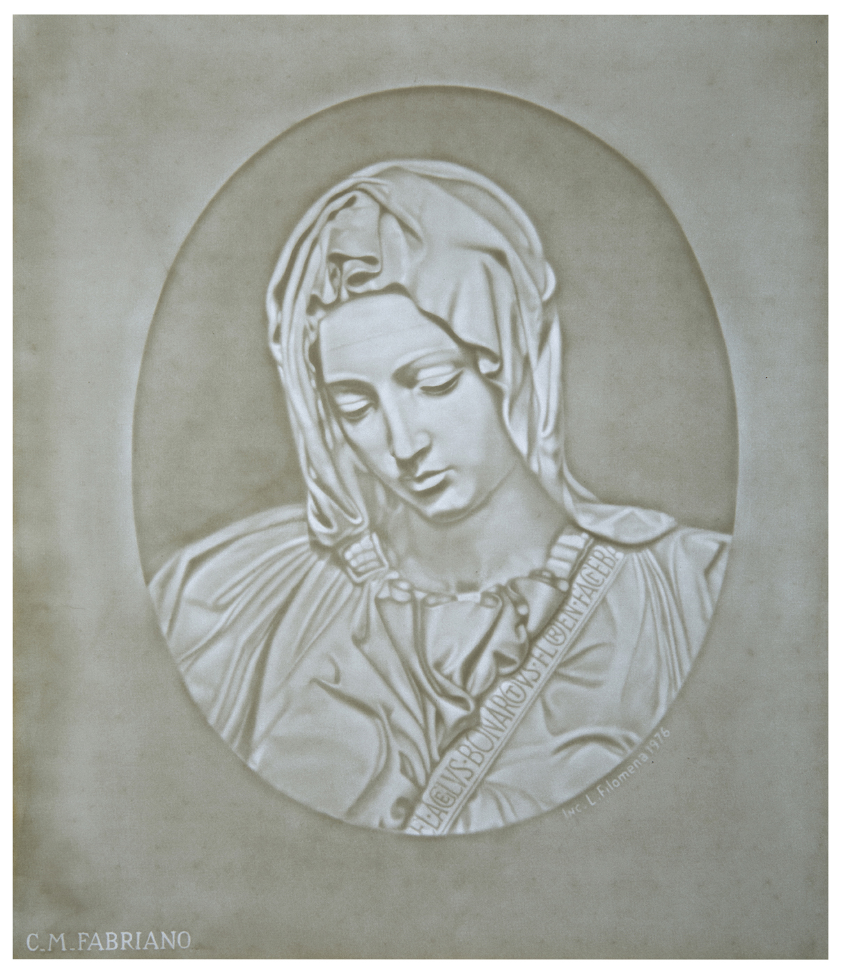 Luigi Filomena (1950) , per Cartiere Miliani, Fabriano Il volto della Vergine, dalla Pietà di Michelangelo, 1976