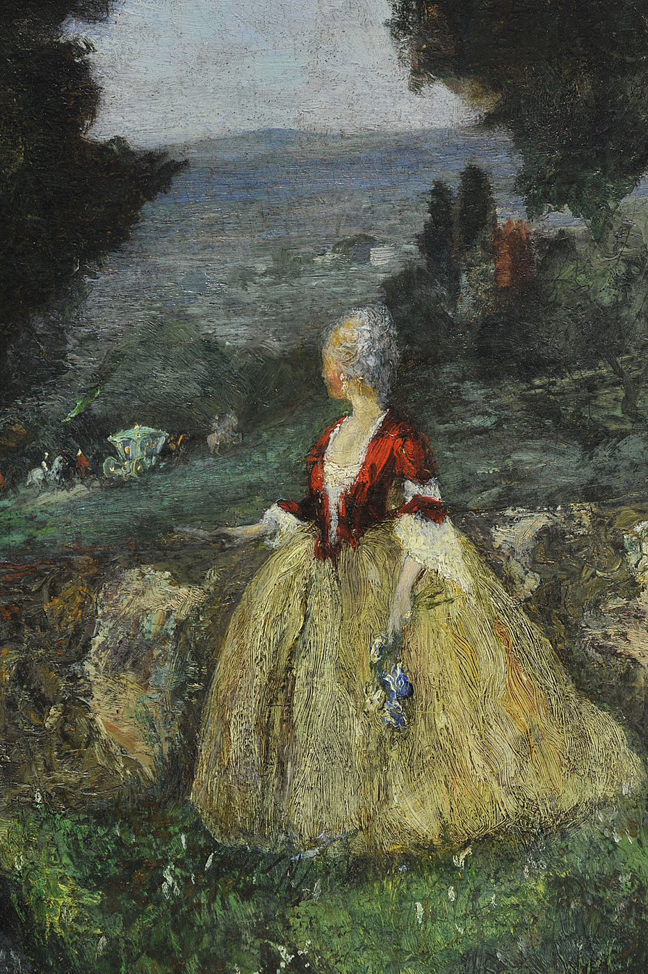 Emma Ciardi (1879 - 1933) Paesaggio con sfilata di carrozze, 1903