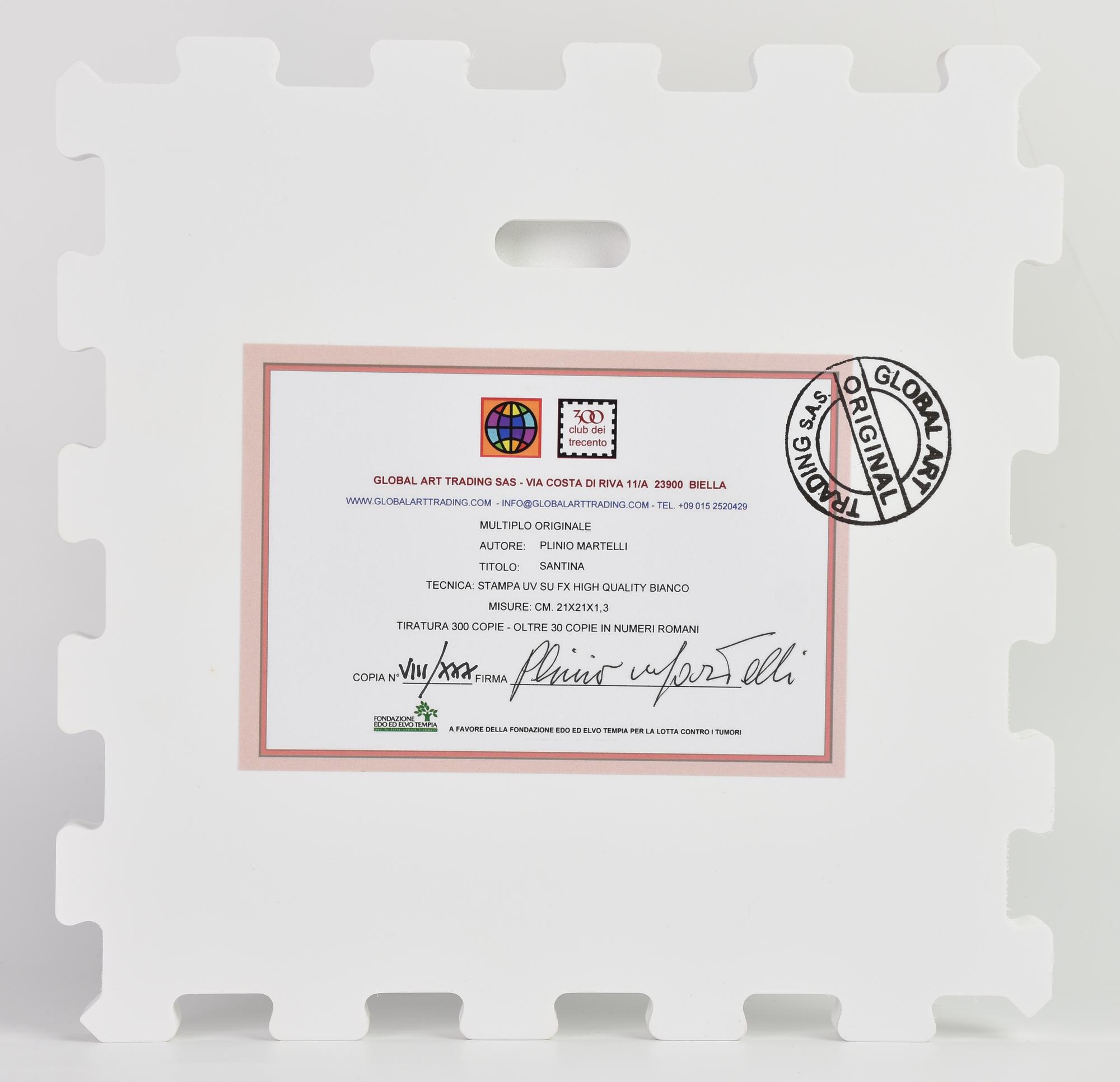 Plinio Martelli SANTINA stampa UV su FX high quality bianco, cm 21x21x1,3;...