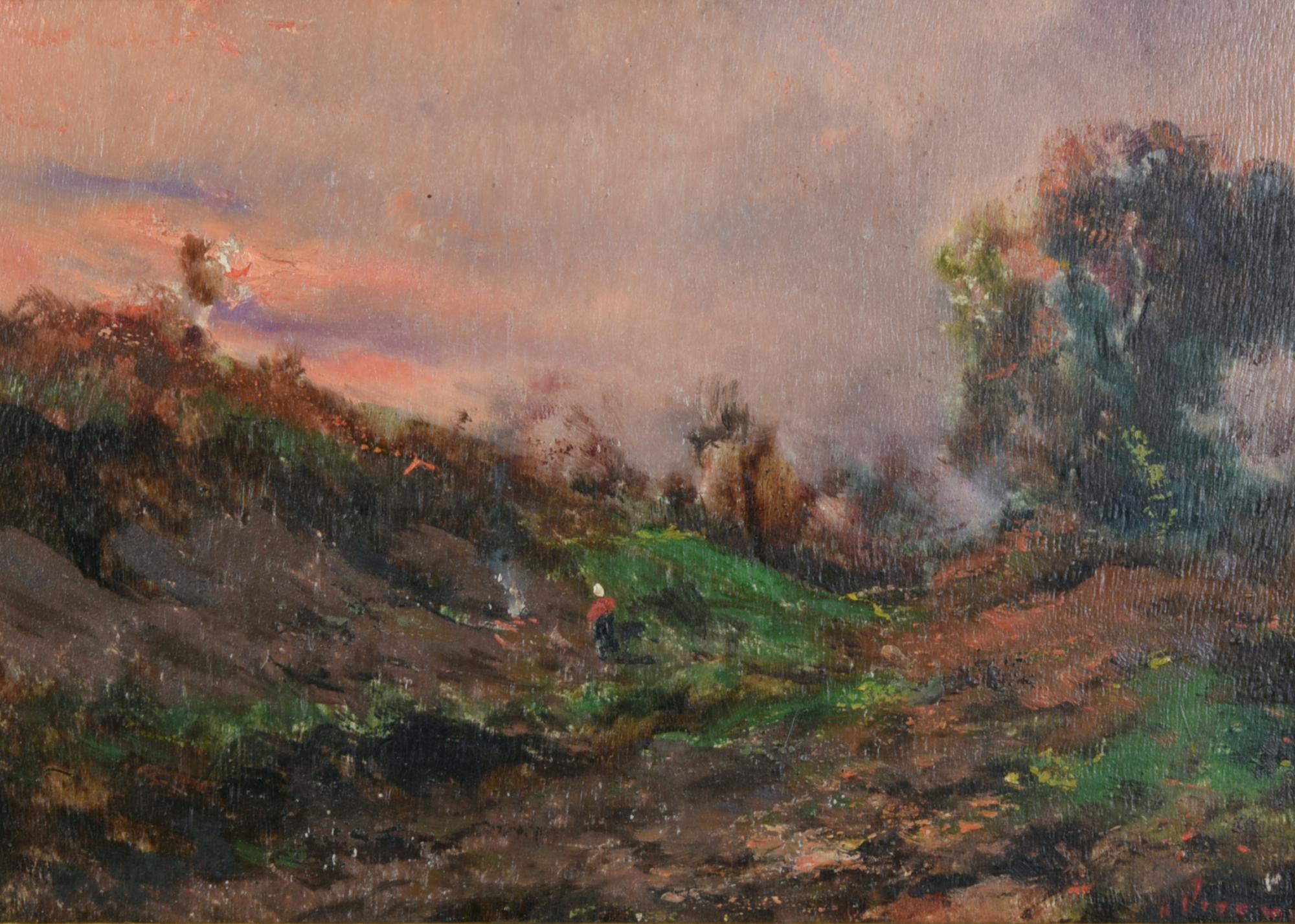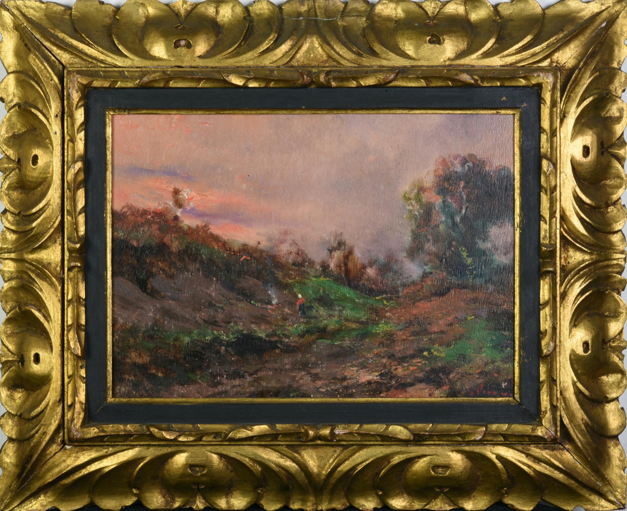 Anonimo del XX secolo PAESAGGIO CON FIGURA olio su tavola, cm 26x37...