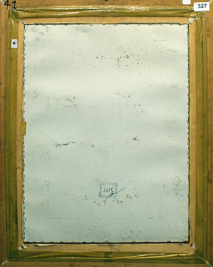 COLOSIMO, "Ruderi a Locri", luglio 1988, tecnica mista su cartoncino, dim 72x52 cm. Al fronte: firma e anno in basso a sinistra ed etichetta in basso a destra con titolo e anno. Al verso: timbro della Galleria Accademia di Torino al centro, in alto mese e anno di esecuzione. Opera con cornice.