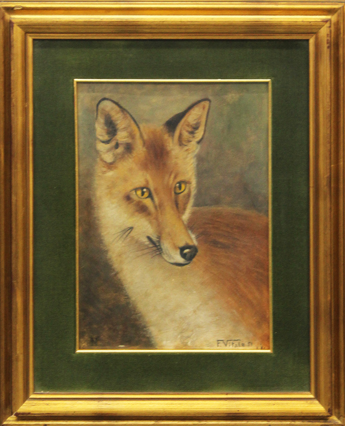 F. VITALE, "La volpe", 1951, tecnica mista su cartone, dim 30x22 cm. Al fronte: firma e anno in basso a destra. Opera con cornice.
