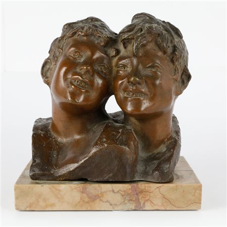 Coppia di fanciulli, scultura in bronzo inizi XX secolo