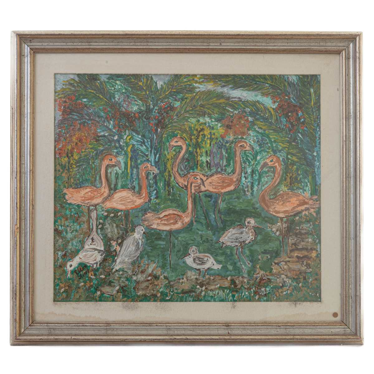 ELLEN STUART ( - 1) Fenicotteri dipinto ad olio su tela 60 x 70 cm