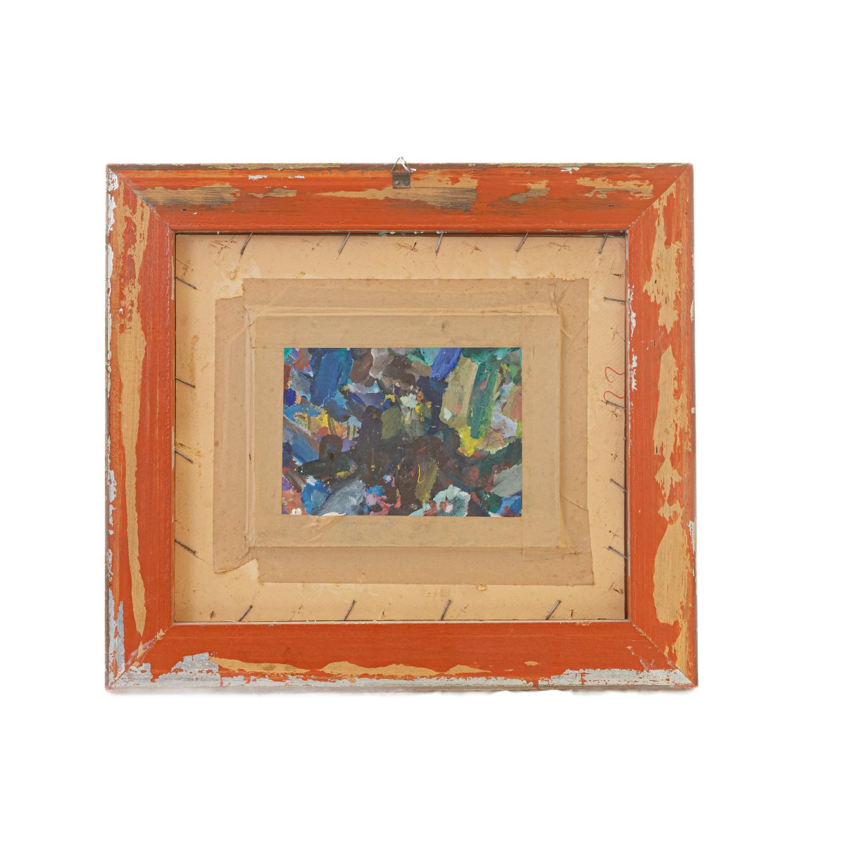dipinto ad acrilico su cartone 19,5 x 25 cm firmato e dedicato al fronte in alto a destra, in cornice