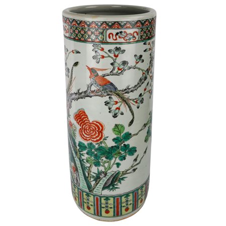 Vaso a cilindro, in porcellana policroma Cina, fine XIX inizi XX secolo