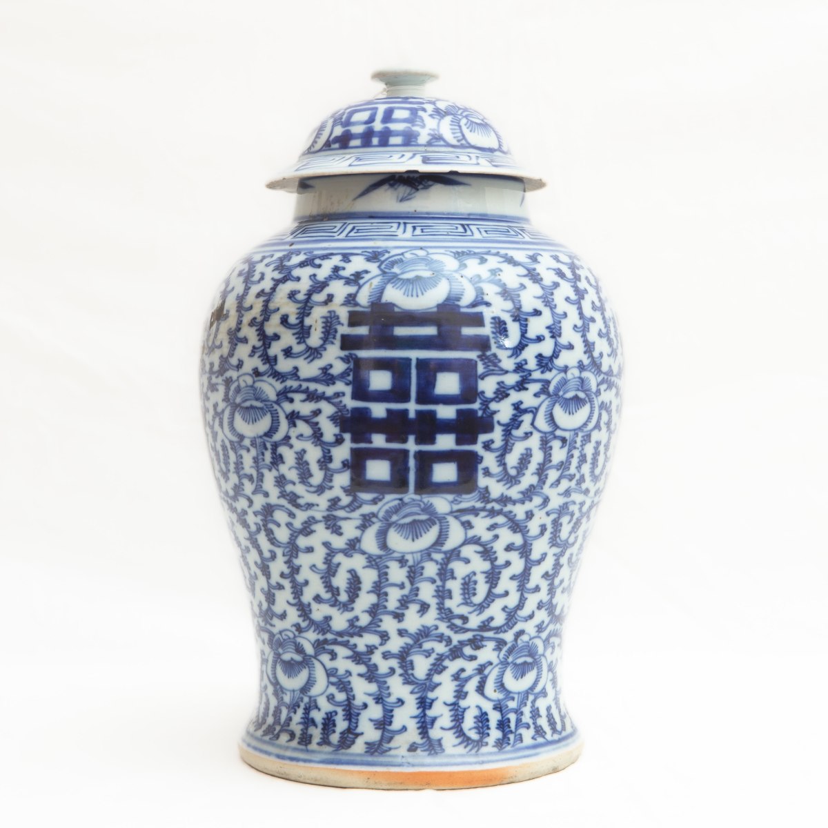 Potiche in porcellana bianca e blu con coperchio Cina periodo Quing XIX secolo
