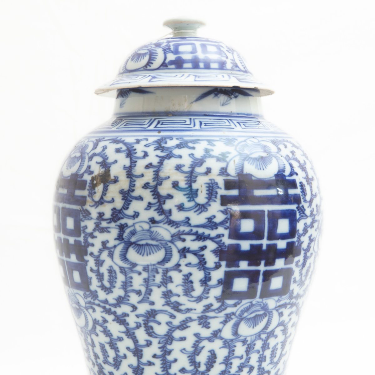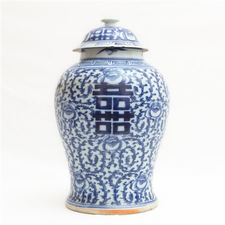 Potiche in porcellana bianca e blu con coperchio Cina periodo Quing XIX secolo 40 X 20 CM
