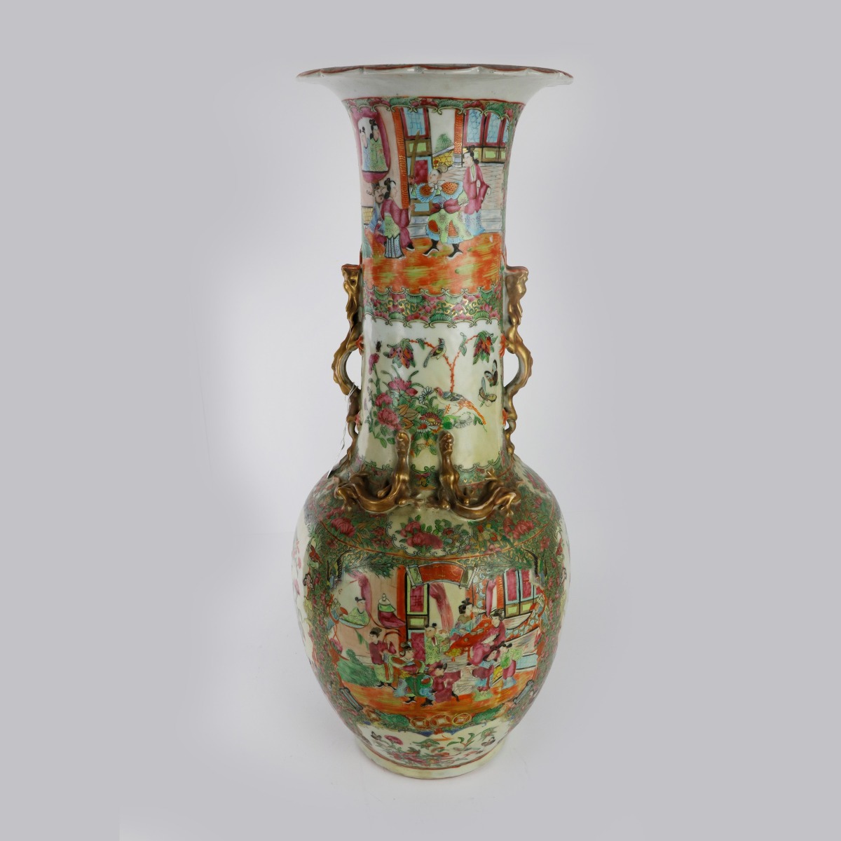 Vaso in porcellana policromo Canton seconda metà XIX secolo 65 x 7,5 cm