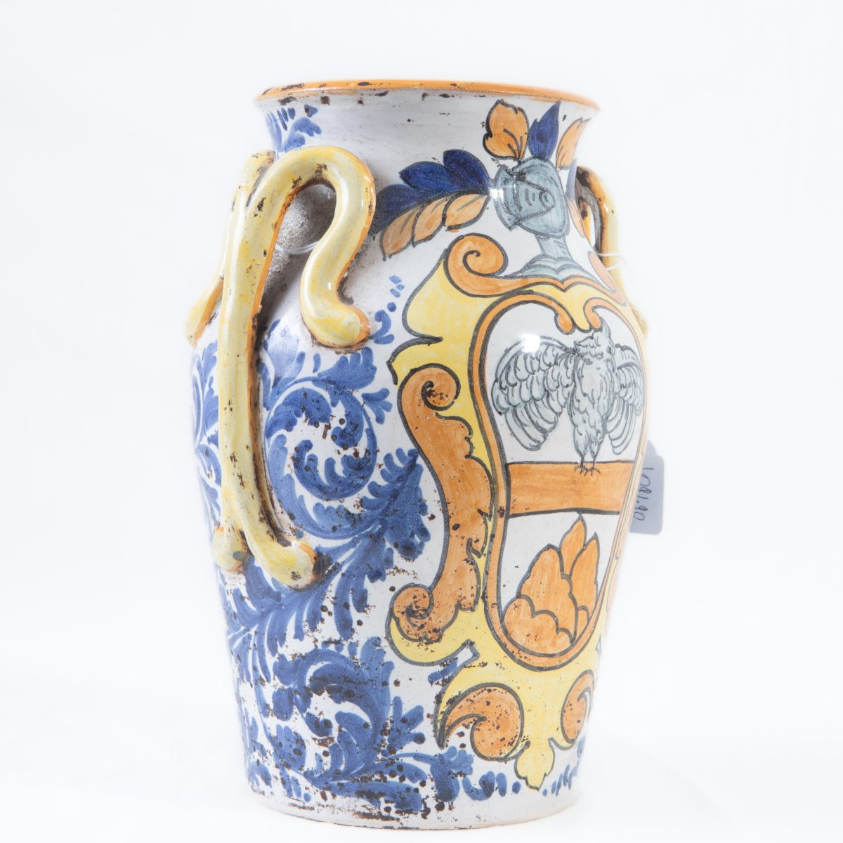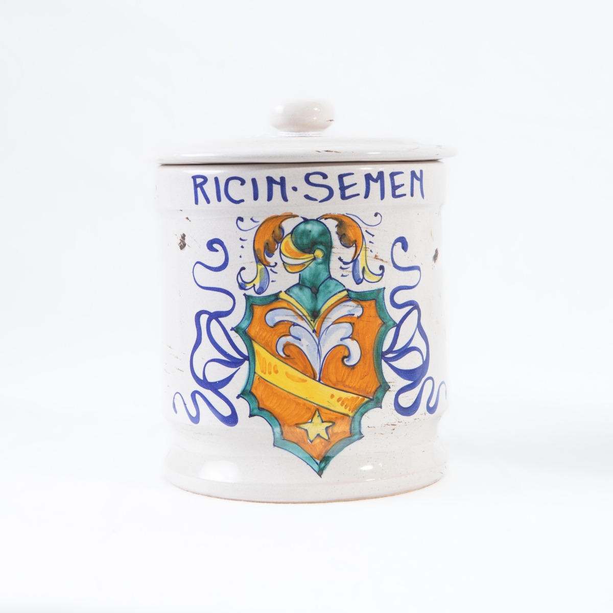 Lotto di due vasi da farmacia in ceramica policroma Italia metà XX secolo