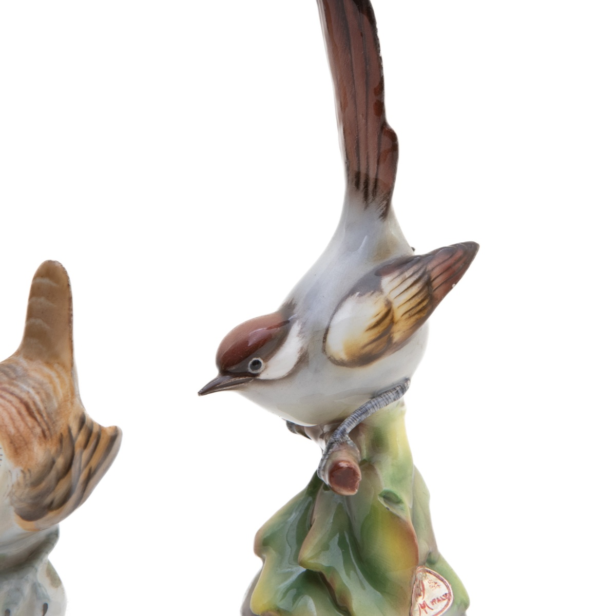 Lotto di tre uccellini in porcellana policroma seconda metà XX secolo