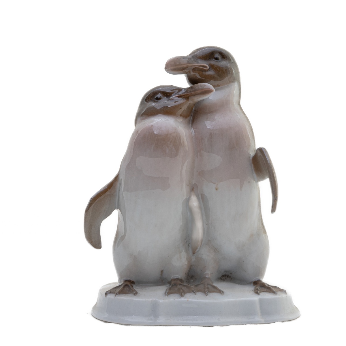Coppia di pinguini, gruppo in porcellana policroma seconda metà XX secolo