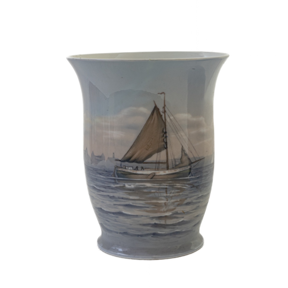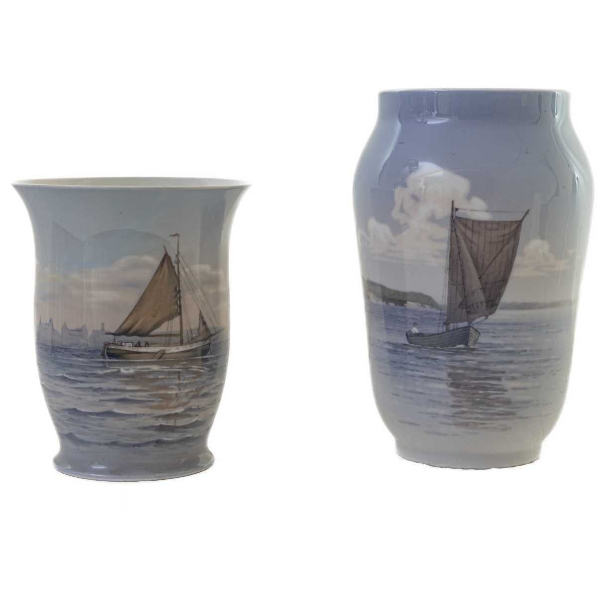 26 x 10 cm a scene di paesaggio marino con barche e città portuali. Manifattura Royal Copenaghen e manifattura Bing & Grondahl